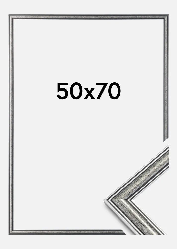 Frigg egy ezüstkeret fekete vonalakkal és feketefoltos elemekkel. Kiválóan alkalmas, ha egy széles, hagyományos ezüstkeretet keresel, amely sokféle képhez és környezethez illik.