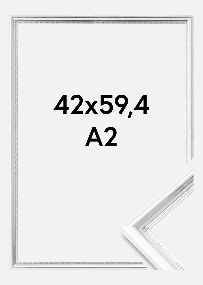 A 42 x 59,4 cm-es méreteivel ez az ezüstkeret tökéletesen illeszkedik az A2 mérethez, így ideális választás otthonra és irodába egyaránt. Legyen szó kiállításról vagy az otthonod személyre szabásáról, ez a keret stílusosan emeli ki a kiválasztott témát.