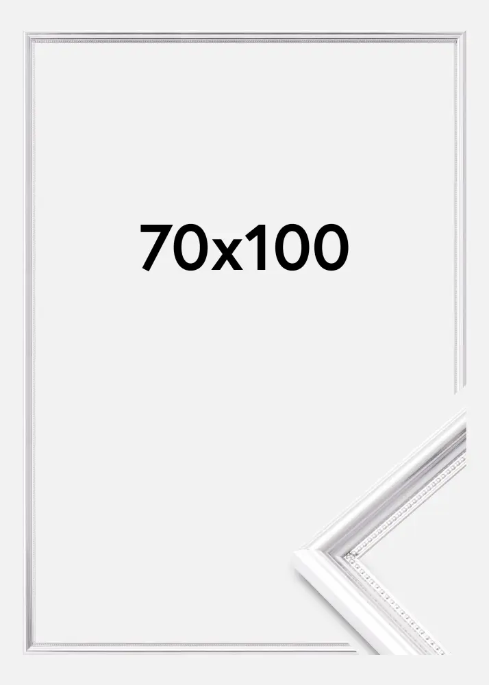 Adj falatainak egy csipetnyi eleganciát ezüstszínű keretünkkel, amelynek mérete 70x100 cm. Ez a képkeret nemcsak stílusos keretet biztosít a képeidnek, hanem önmagában is egy műalkotás retro stílusú profilozott kialakításával. A keretléc 20 mm-es szélességű fényes felülete megragadja a fényt, és luxusérzetet kelt kiválasztott képed számára.