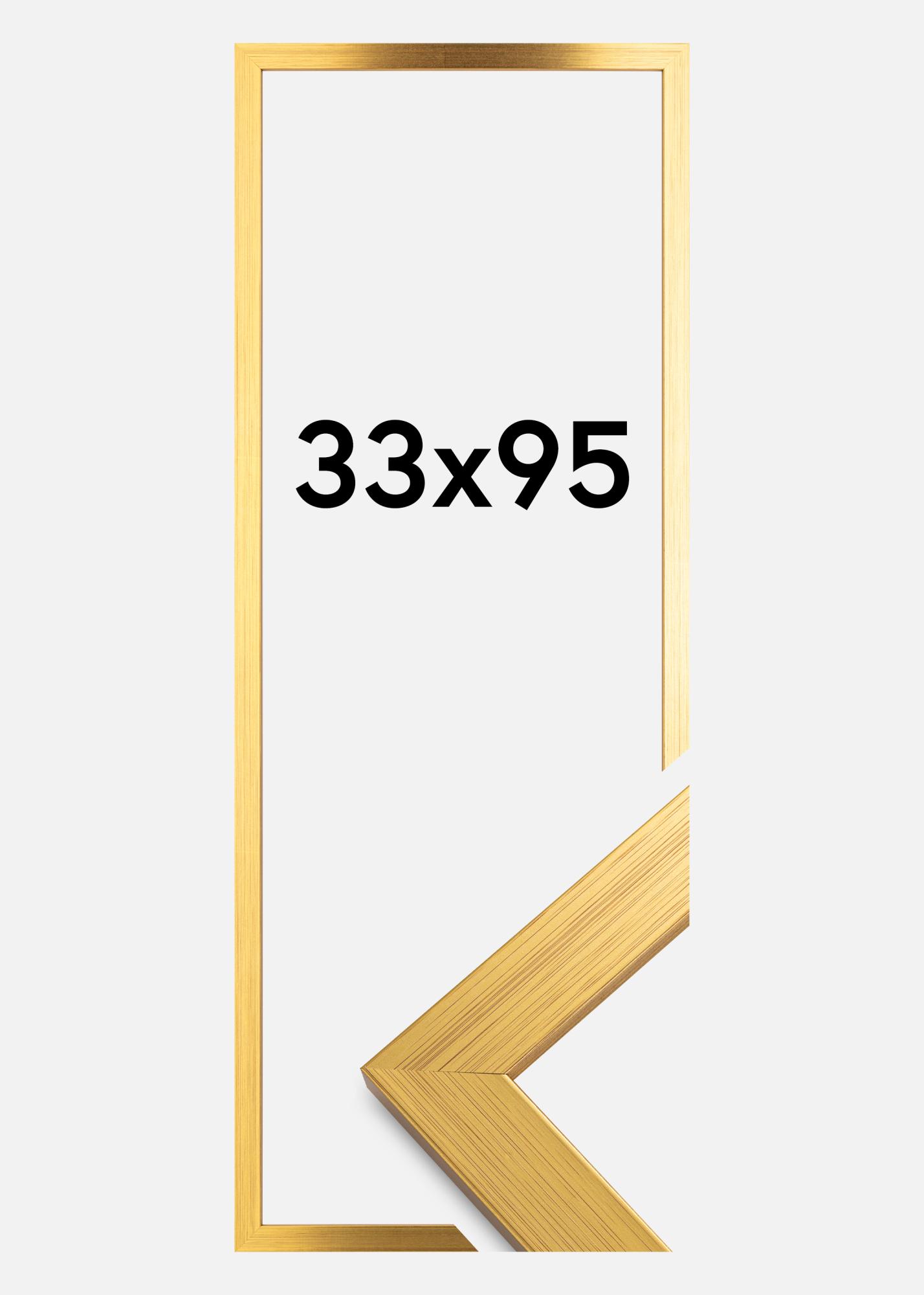 Hozzon létre luxus érzetet otthonában ezzel az elegáns, 33x95 cm-es aranyszínű aranykerettel. Klasszikus kialakításával és csillogó felületével bármilyen falon figyelemfelkeltővé válik. Ez a képkeret nemcsak stílusos lakberendezési elem, hanem praktikus is a mellékelt fémakasztóknak köszönhetően, amelyek lehetővé teszik a vízszintes és függőleges felakasztást is.