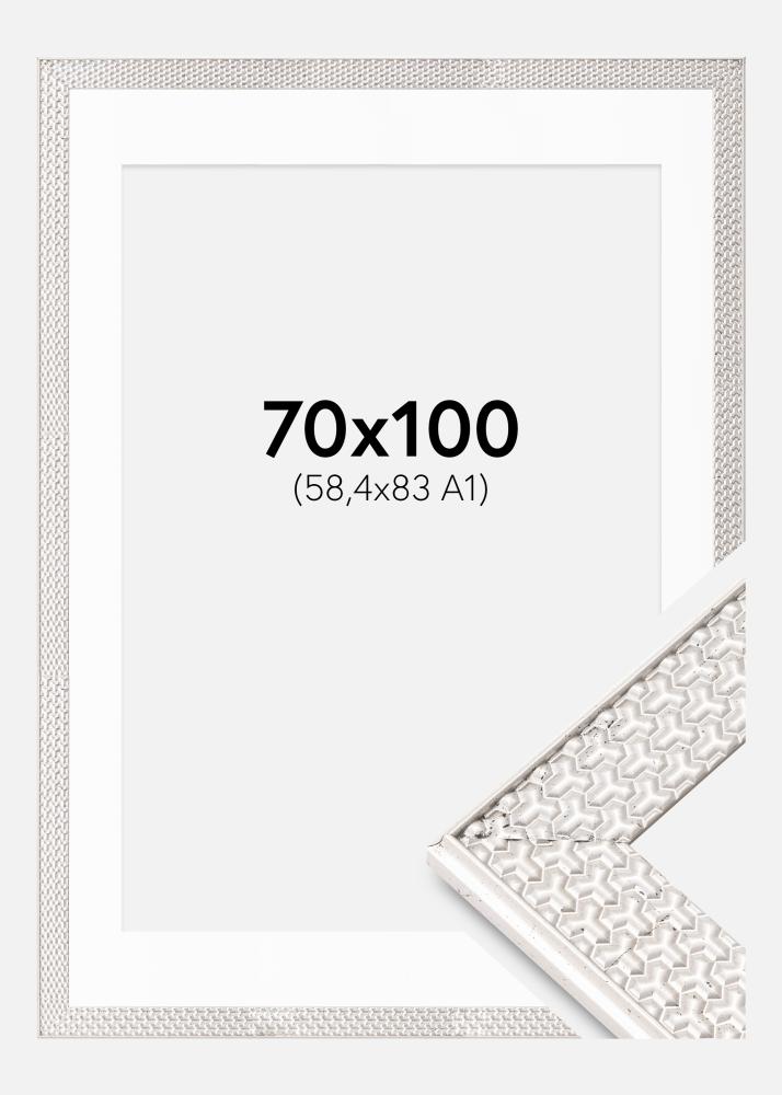 Keret Grace Ezüst 70x100 cm - Paszpartu Fehér 59,4x84 cm (A1)
