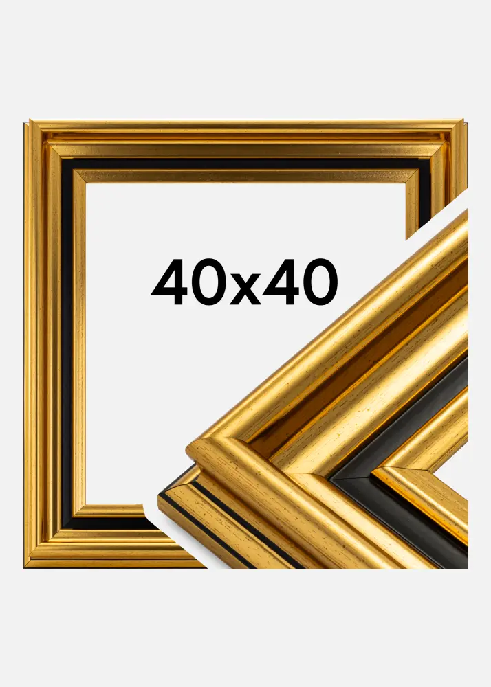 Gysinge egy gyönyörű aranykeret extra széles profillal, amelyet mindig észreveszünk. A motívum körül egy fekete szél található, amely tovább erősíti a keret szép profilját. Tökéletes, ha valami egészen különlegeset keresel a legszebb képeidhez. A Gysinge Arany az egyik kedvencünk a családi képekhez, ahol igazán exkluzív keretet keresel.