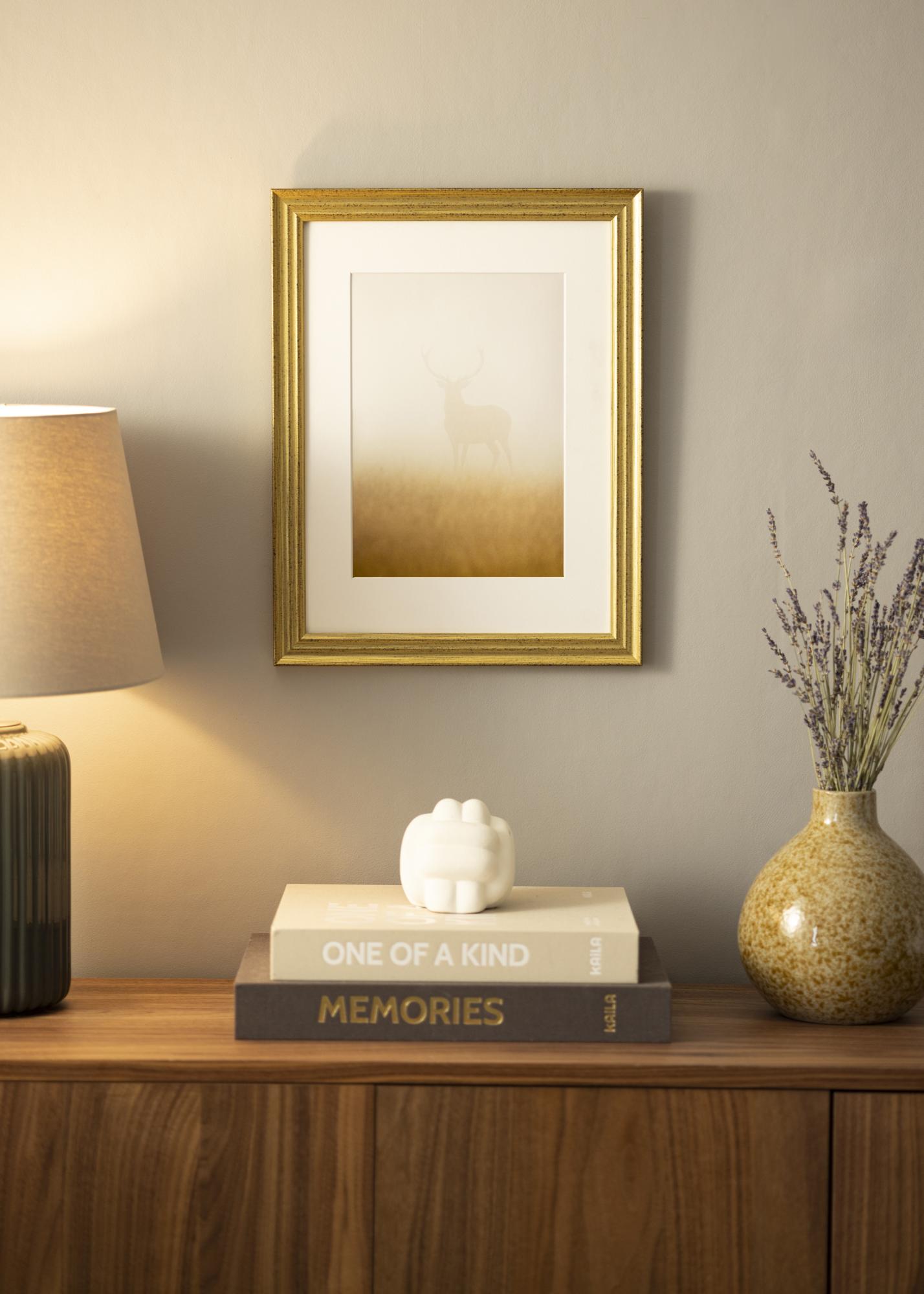Amikor egy elegáns retro stílusú aranykeretet keresel, a "Heby Guld" a nyilvánvaló választás. A régi stílusú aranyszínével és masszív profiljával a "Heby Guld" az egyik legnépszerűbb termékünk családi képek és más olyan képek számára, melyeket különösen kedvelsz. Azáltal, hogy magad választhatod meg a méretet, pontosan olyan méretet biztosíthatsz, amilyet az új, szép keretedhez keresel.