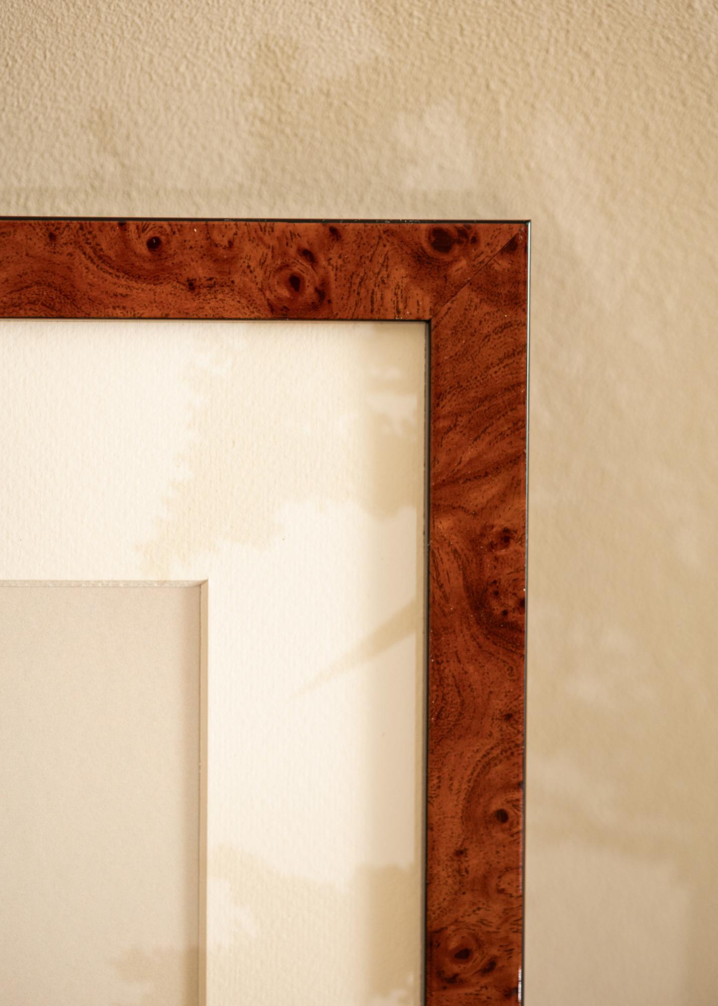 Adja meg kedvenc képeinek az őket megillető figyelmet ezzel az elegáns diómintás képkerettel. A 70x100 cm-es méret tökéletes a nagyobb műalkotások vagy fényképek kiemelésére. A keret szegélyének szélessége 19,6 mm, amely egyedi keretet ad a képének, míg a keret mélysége 25 mm lenyűgöző profilt hoz létre a falon.