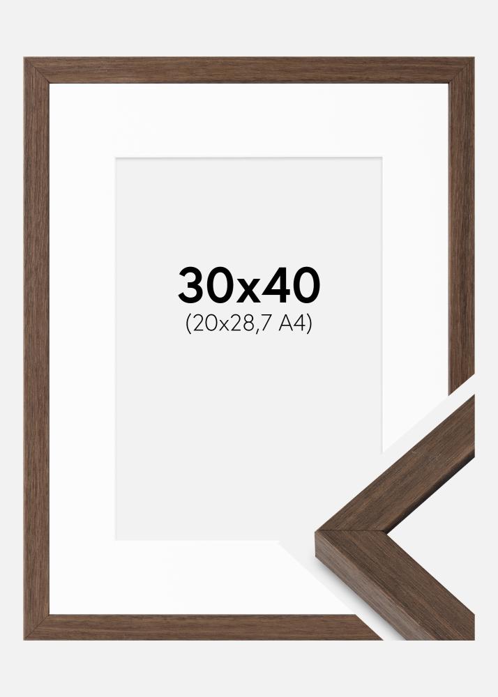 A paszpartu 21x29,7 cm-es (A4) képekhez illik. A keret színe diómintás, 19,6 mm széles és 25 mm mély. A paszpartu színe fehér.