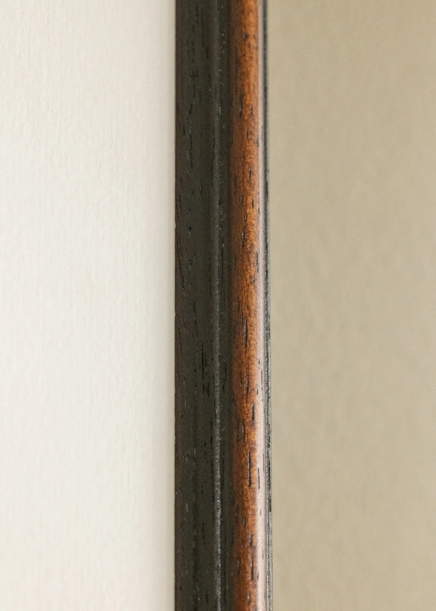 A keret alig és elegáns keretlécet tartalmaz, amely 15 mm széles és 14 mm mély, így elegáns és finom benyomást kelt a falon. Továbbá praktikus fémakasztókkal van felszerelve a hátoldalán, lehetővé téve a keret mind vízszintes, mind függőleges felakasztását saját kívánság szerint.