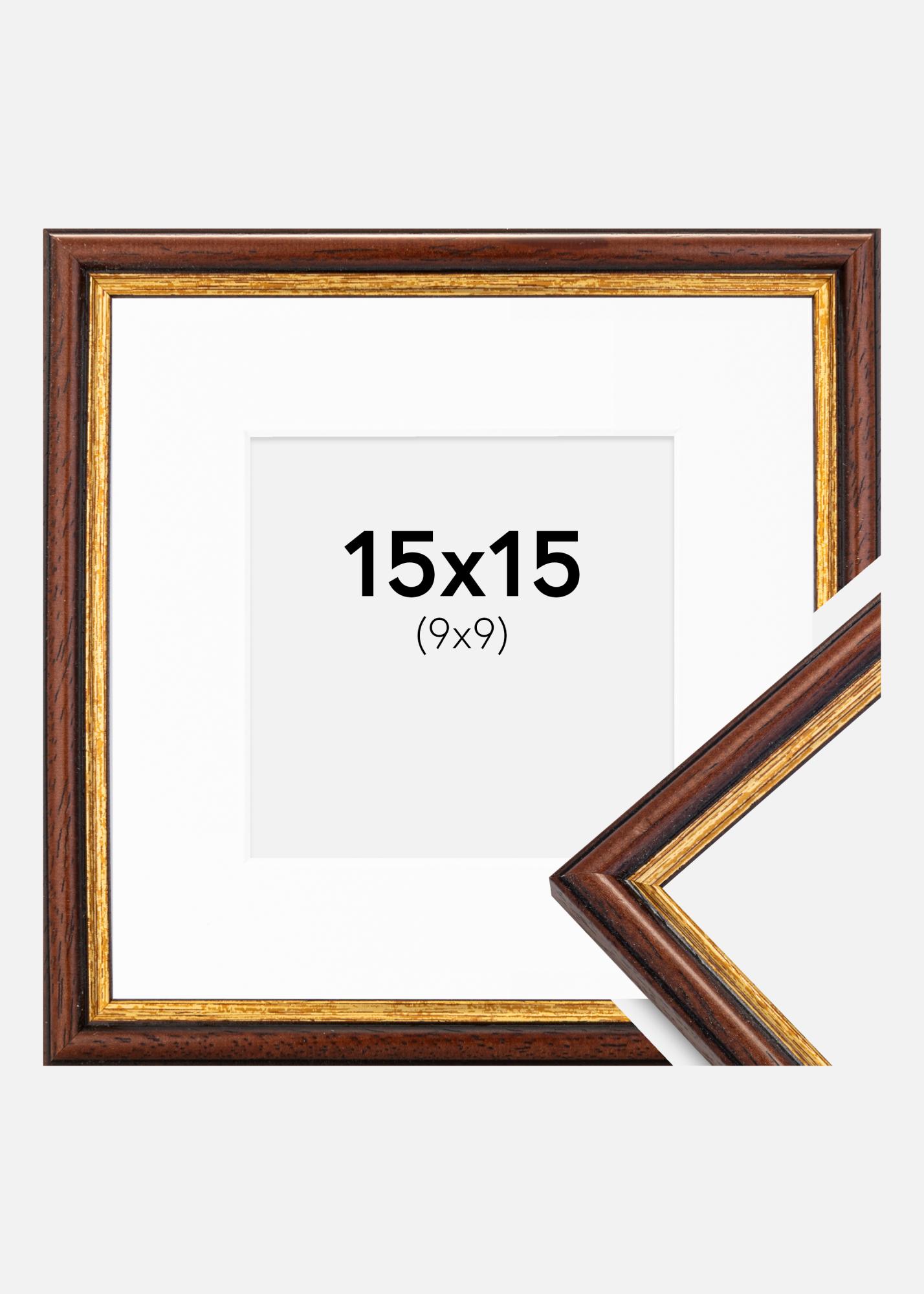 A keret, egy kifinomult barna árnyalatban, matt felülettel és 15 mm-es finom szélességgel rendelkezik, amely diszkrét eleganciát ad anélkül, hogy uralná. 14 mm-es mélysége szép dimenziót és árnyékot ad, amely tovább fokozza a keretezést. A fehér paszpartu kontrasztot teremt a keret meleg tónusával, harmonikus bemutatót teremve fényképének vagy műalkotásának.