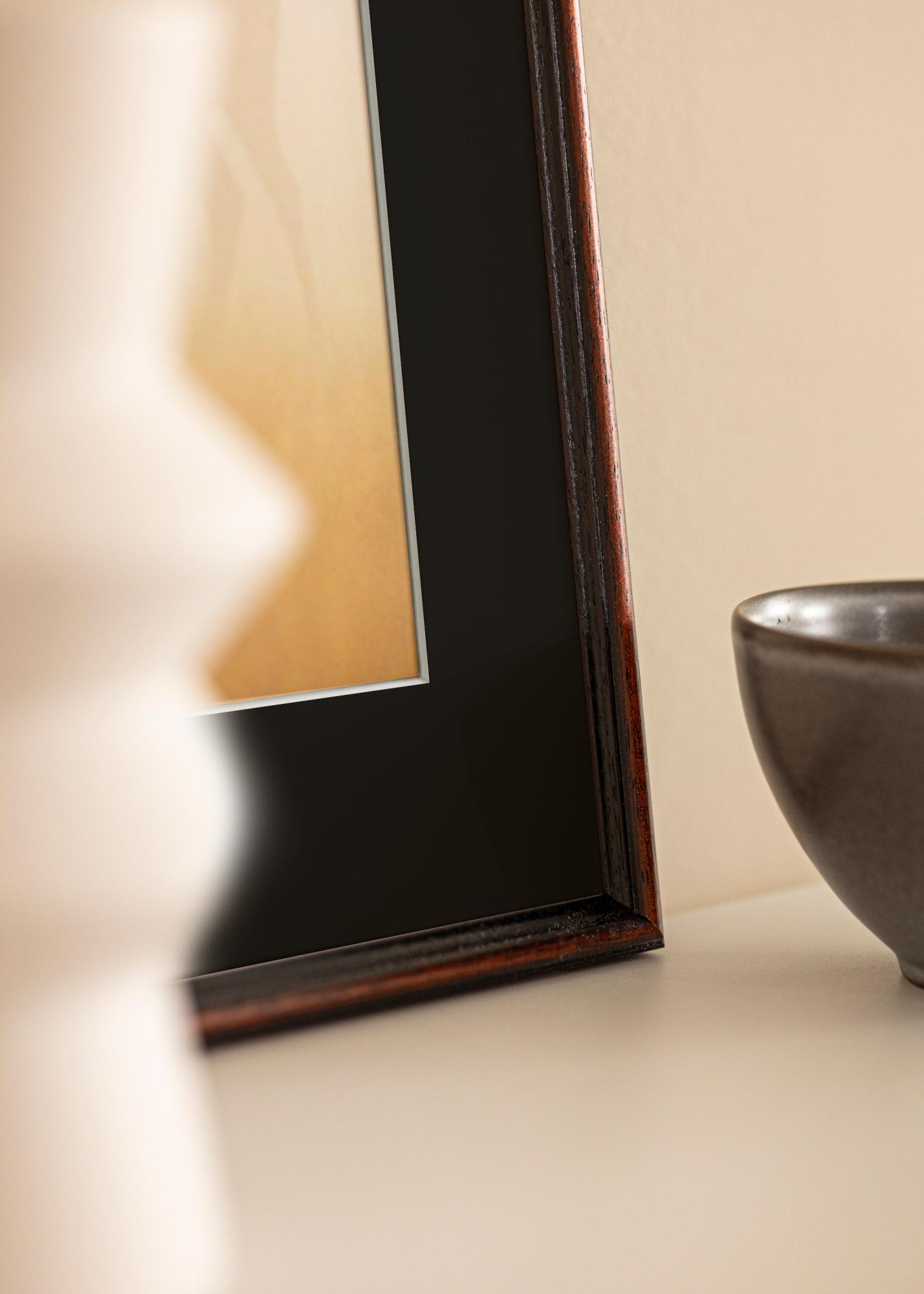 A keret meleg fa árnyalatú, matt felülettel és 15 mm-es diszkrét szélességgel rendelkezik, amely kifinomult megjelenést kölcsönöz, anélkül, hogy dominálna. A 14 mm-es mélysége pedig minőségi és robusztus érzést nyújt.