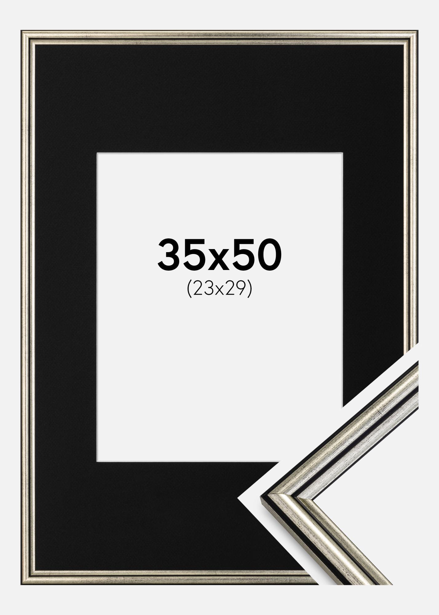 Keret Horndal Ezüst 35x50 cm - Paszpartu Fekete 24x30 cm