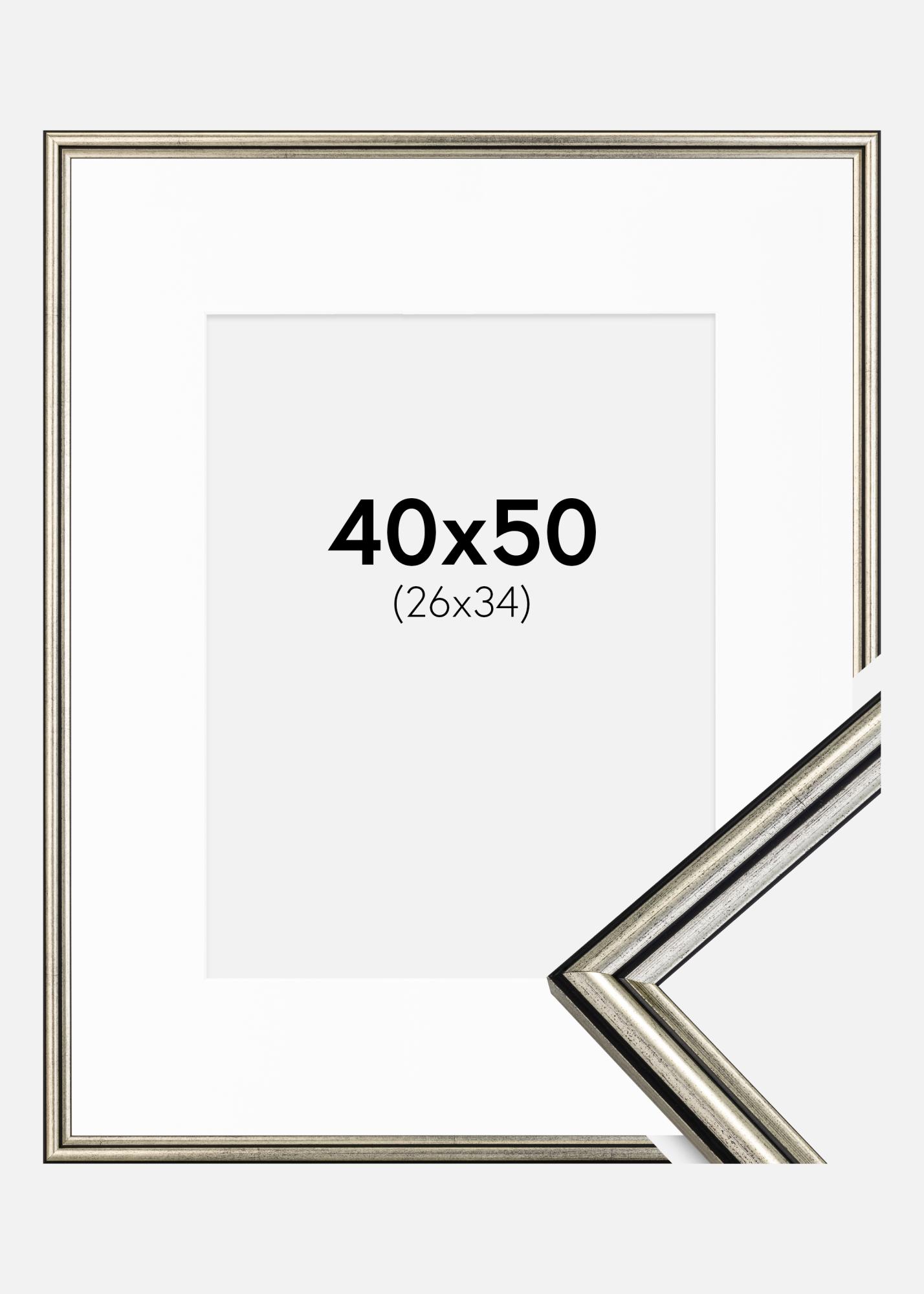 Keret Horndal Ezüst 40x50 cm - Paszpartu Fehér 27x35 cm