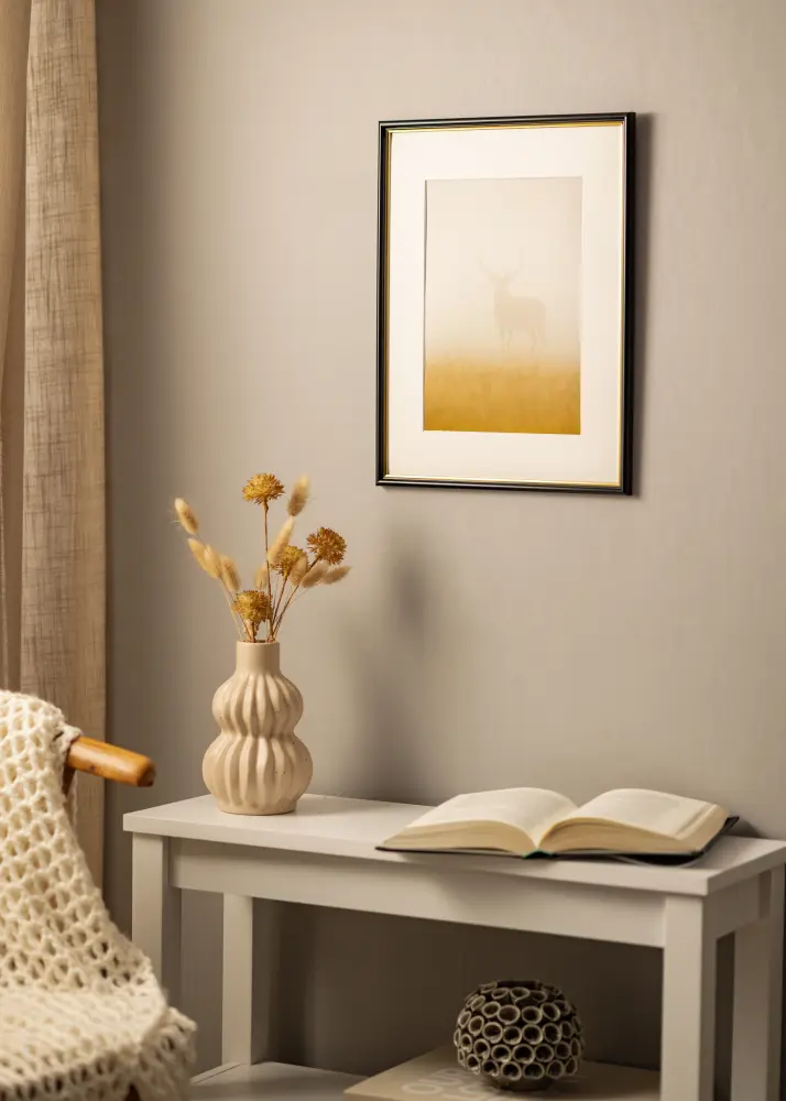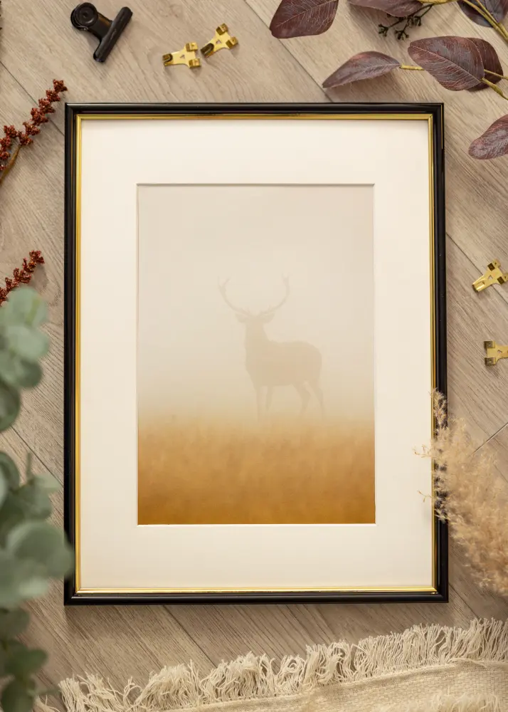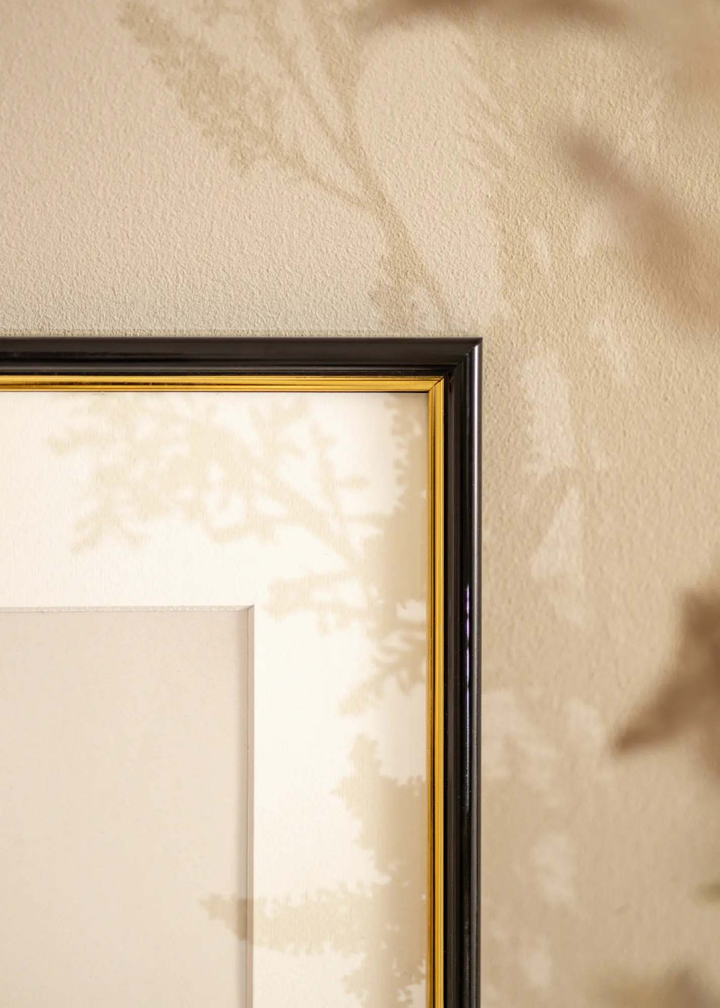 A Jazz Fekete klasszikus dizájnnal rendelkezik, aranyszínű belső széllel, amely az bekeretezett képnek elegáns megjelenést kölcsönöz.