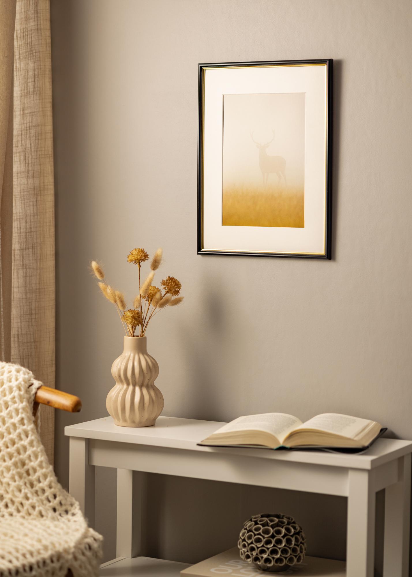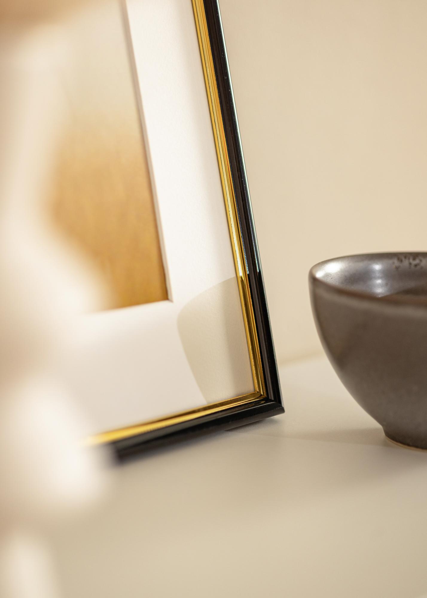 Jazz Svart klasszikus dizájnnal rendelkezik, aranyszínű belső szegéllyel, amely elegáns megjelenést kölcsönöz a bekeretezett képnek.