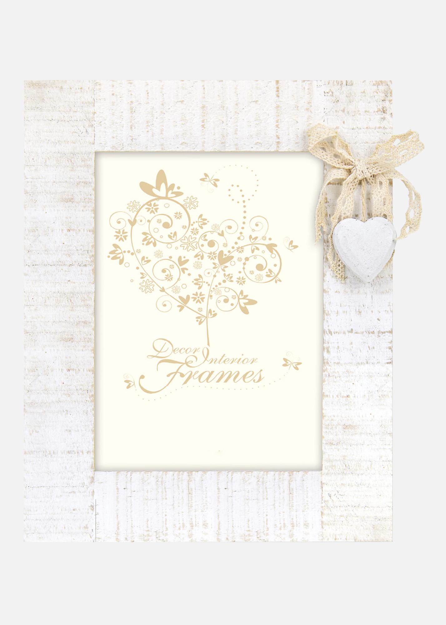 Adj emlékeidnek bájos keretet ezzel a gyönyörű vintage kerettel. A 10x15 cm-es méretével tökéletesen kiemeli kedvenc fotóidat egy kis nosztalgikus érintéssel. A világos felületet egy dekoratív kis szalag és szív díszíti, amely romantikus érzést kölcsönöz a berendezésednek.