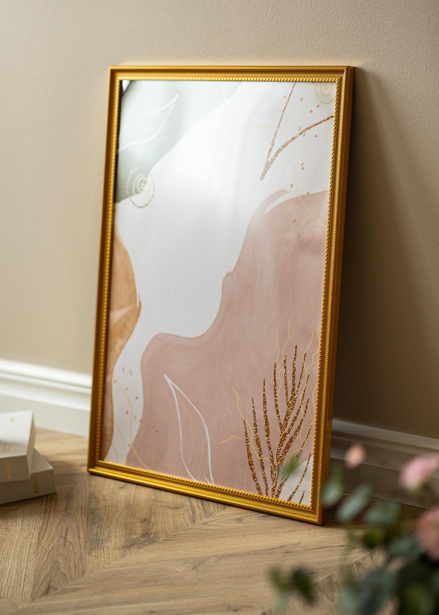 Annak érdekében, hogy az üveg tökéletes állapotban érkezzen, az akrilüveg mindkét oldalán védőfólia található, amelyet használat előtt el kell távolítani. Ez az arany képkeret nemcsak praktikus választás, hanem dekoratív eleme is otthonodnak. Legyen szó nappali, hálószoba vagy iroda berendezéséről, ez kifinomult és időtálló bemutatását nyújtja a legkedveltebb képeidnek. A keret a 21 x 29,7 cm-es (A4) méretű motívumokhoz illik, és kiváló választás azok számára, akik stílusra és funkcionalitásra egyaránt vágynak.