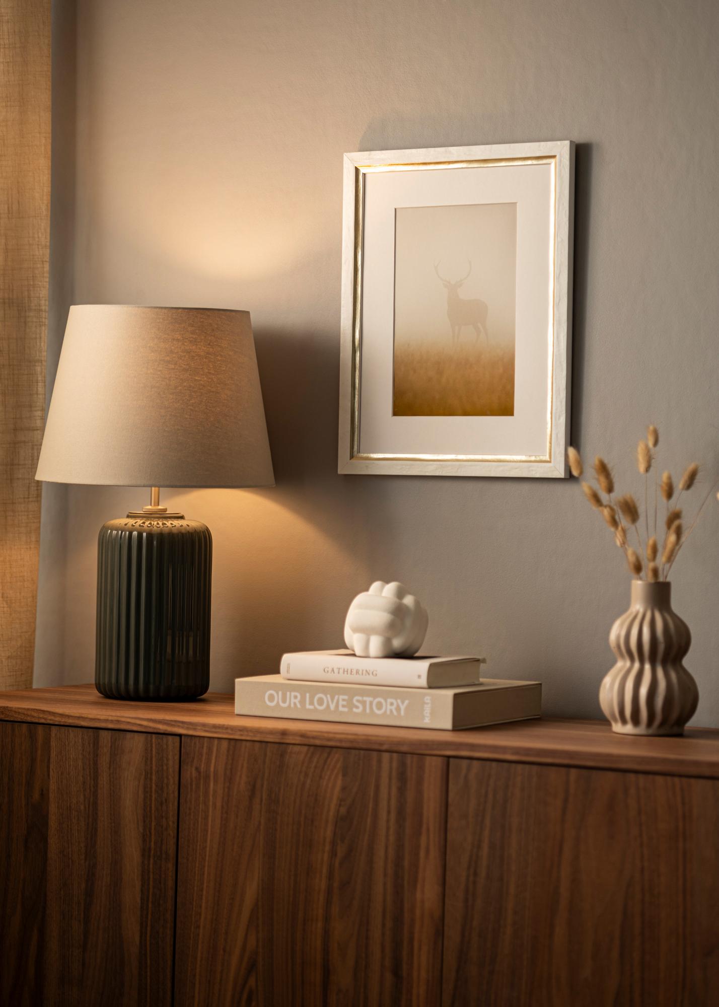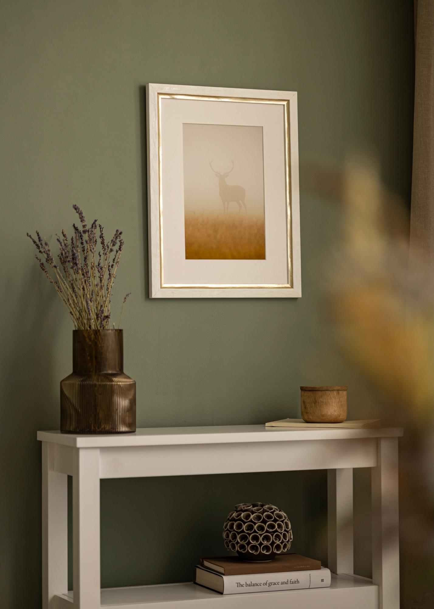 "Leonie" egy széles képkeret, amelyet Olaszországban gyártanak, garantálva a magas minőséget és a szép dizájnt. A keret elegáns profilú fehér színű, jól strukturált felülettel, amelyet széles ezüst szegély díszít a motívum mellett.