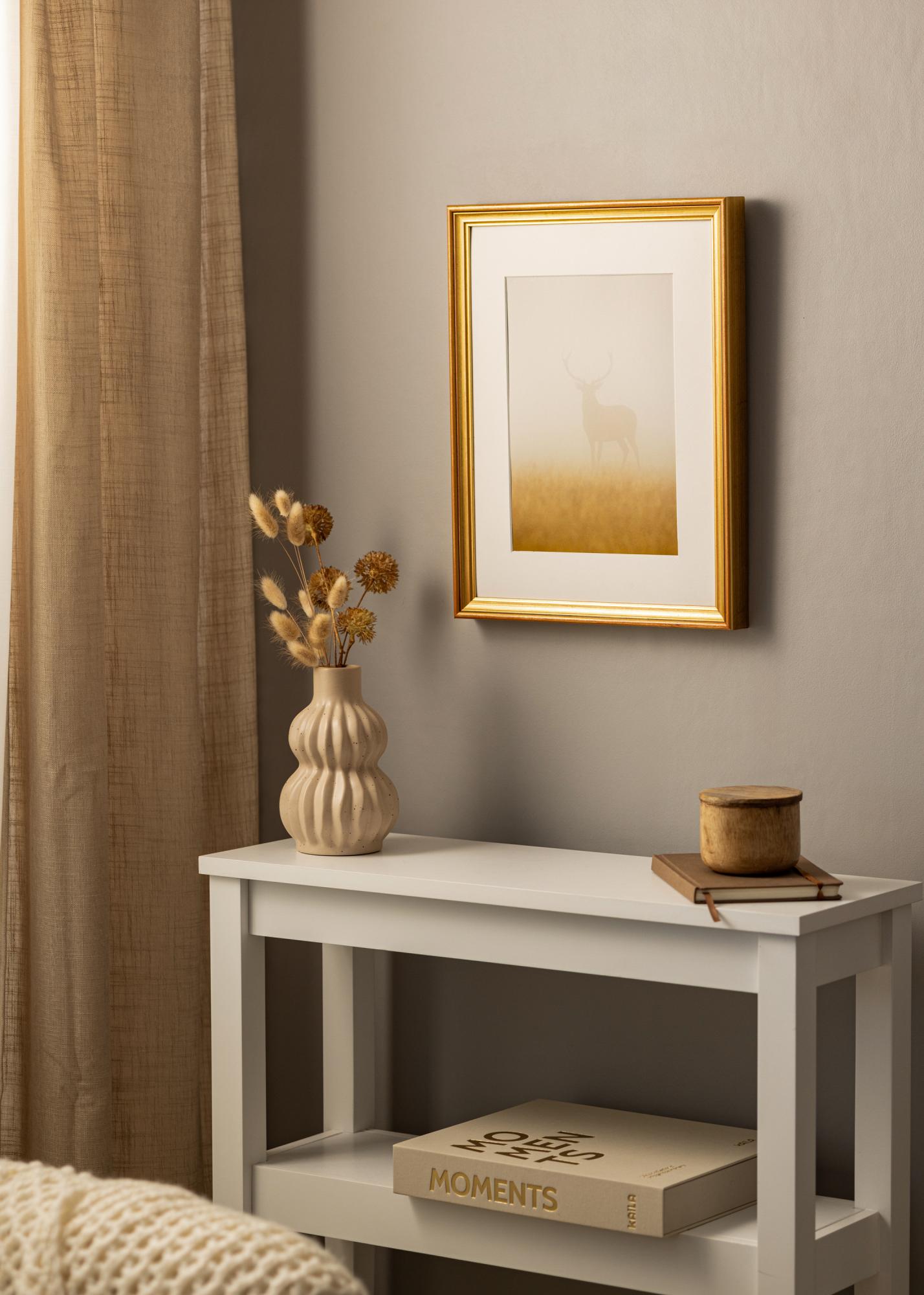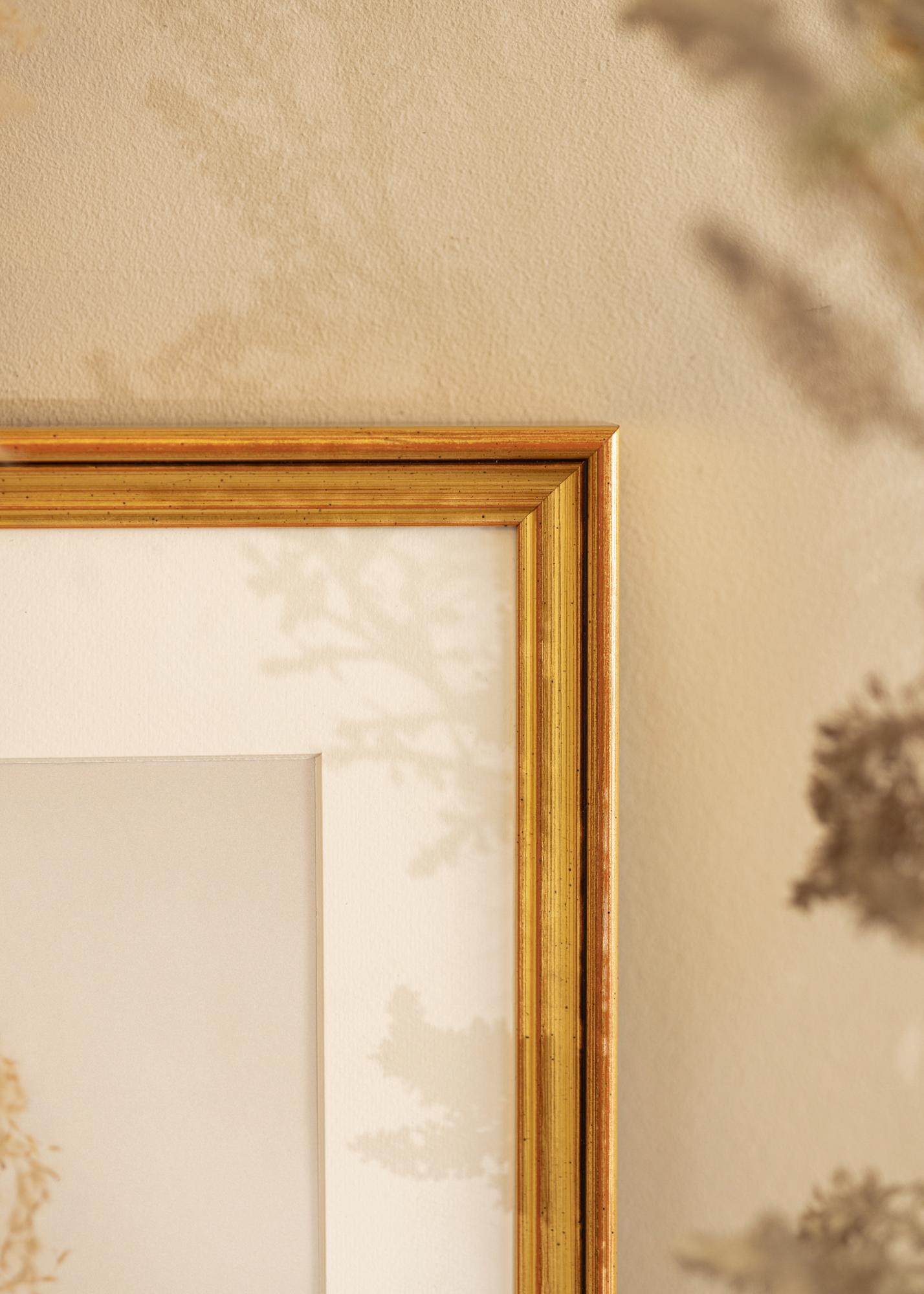 A Loki Arany Keret egy elegáns és klasszikus fényképkeret, amely kifinomult keretet ad műalkotásainak és fényképeinek. Elegáns profiljával és finoman patinázott részleteivel ez az aranykeret időtlen karaktert kínál, amely tökéletesen illik mind modern, mind hagyományos környezetbe. Az arany felület enyhén antik kidolgozású, kis sötét részletekkel, ami fokozza elegáns megjelenését, és mélység és történelem érzetet kelt.