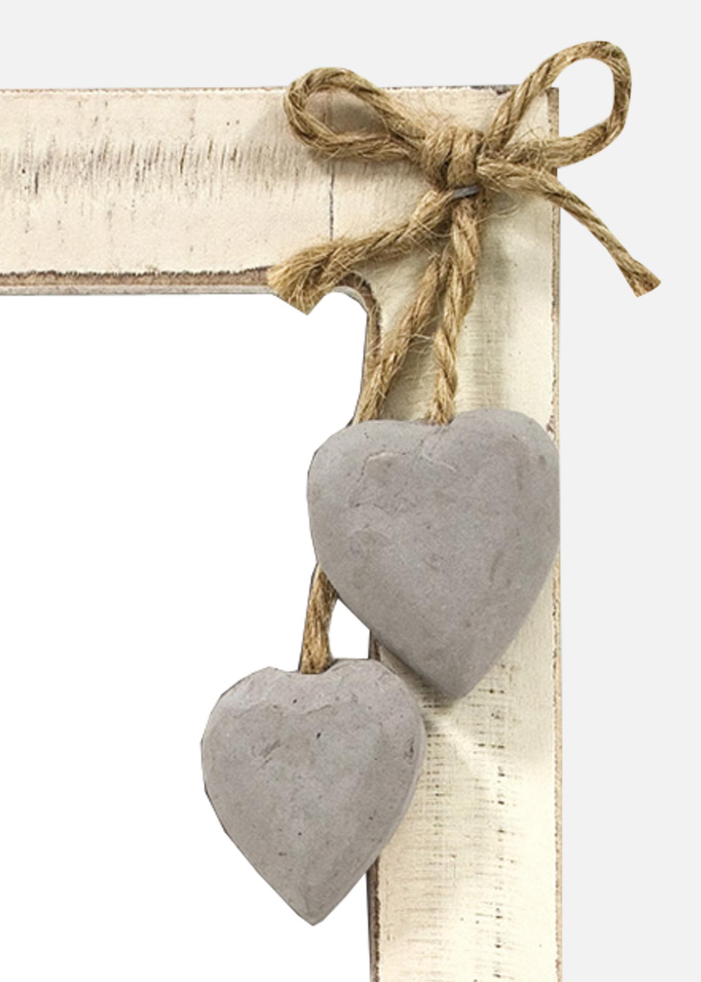A Metz egy krémszínű vintage keret, amely kopott és kézzel festett benyomást kelt. A keret kialakítása az aranyos részletekre összpontosít, például mi a véleménye a kis cuki szívekről, amelyek kender kötélre vannak akasztva? Vintage és romantika a legjobb formában!