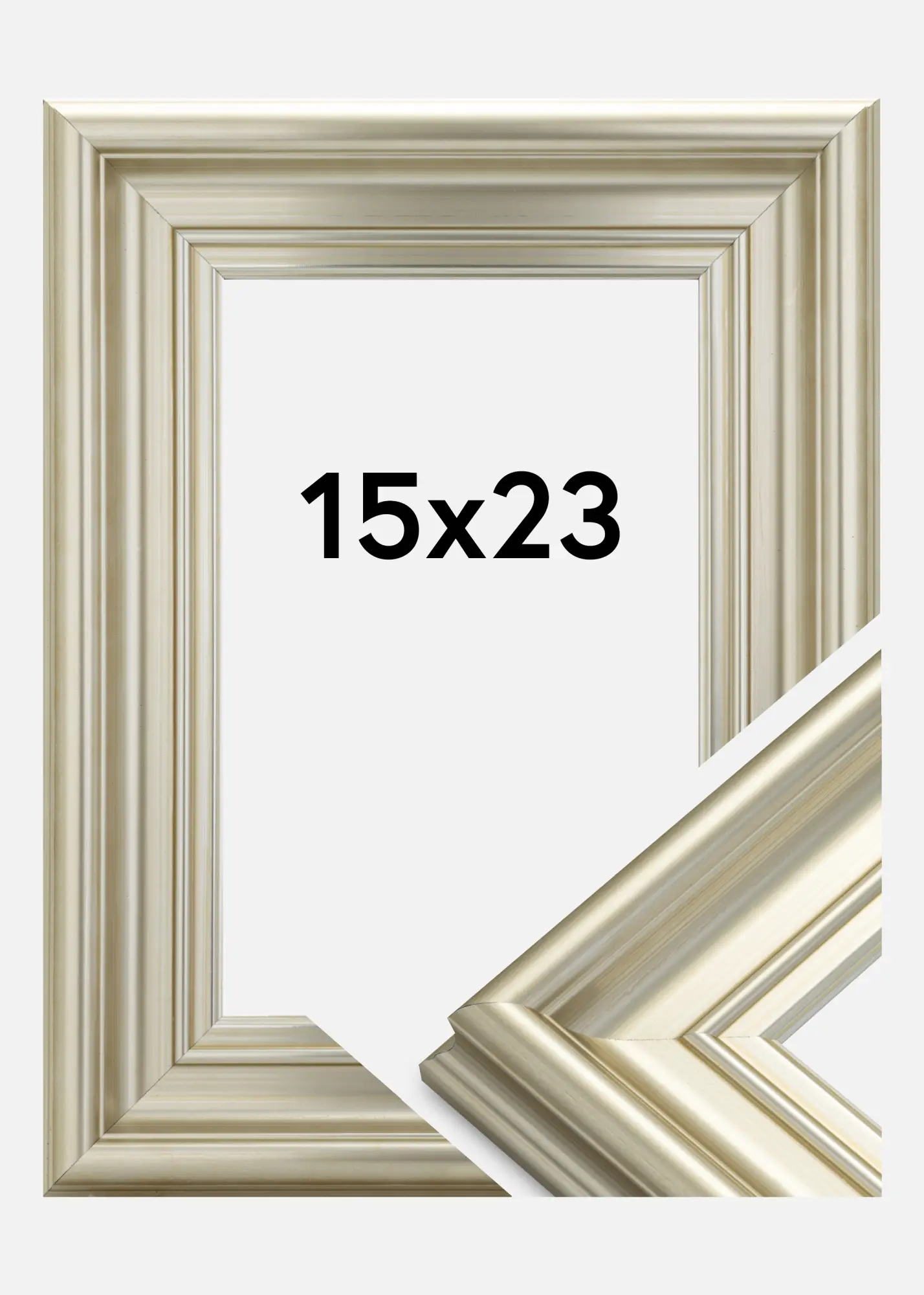 A Mora Premium Silver az egyik legfinomabb ezüst keretünk. A gyönyörű svéd erdőinkből származó fából készült, és a saját keretműhelyünkben szerelték össze. Ennek köszönhetően olyan minőséget garantálhatunk, amely túlmutat a hétköznapokon. A keret lágy ezüstszínű profilja régi festett stílusban készült, és teljes szélessége 57 mm. Tökéletes a legszebb képeidhez!