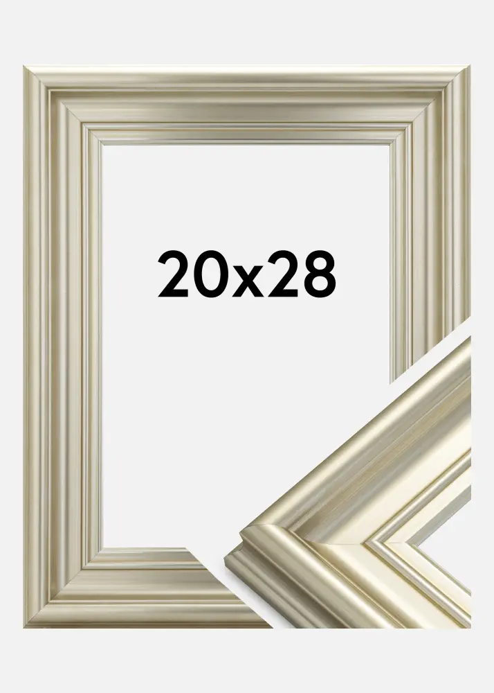 A Mora Premium Silver az egyik legfinomabb ezüstkeretünk. A gyönyörű svéd erdőinkből származó fából készült, és a saját keretező műhelyünkben szereljük össze. Ez lehetővé teszi, hogy kivételes minőséget ígérjünk. A keretnek lágy ezüst színű mintája van, régi festett stílusban, amelynek szélessége 57 mm. Tökéletes a legszebb képeidhez!