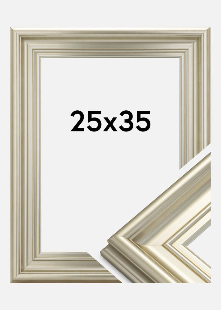 A Mora Premium Silver az egyik legfinomabb ezüst képkeretünk. Finom svéd erdeinkből származó fából készül, és saját keretműhelyünkben szereljük össze. Ez lehetővé teszi, hogy kivételes minőséget ígérhessünk. A keret puha ezüst színű profillal rendelkezik, régi festett stílusban, 57 mm teljes szélességgel. Tökéletes a legszebb képeidhez!