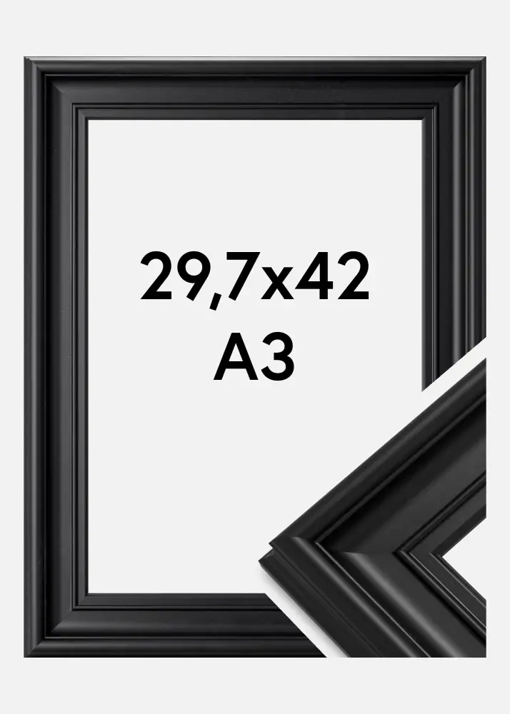 Mora Premium Fekete az egyik legkiválóbb képkeretünk. Svéd erdőink szép fáiból készült és saját keretműhelyünkben szereltük össze. Ez lehetővé teszi, hogy rendkívüli minőséget garantáljunk. A keret egy elegáns, széles fekete profillal rendelkezik, mely 57 mm széles. Tökéletes a legszebb képeidhez!