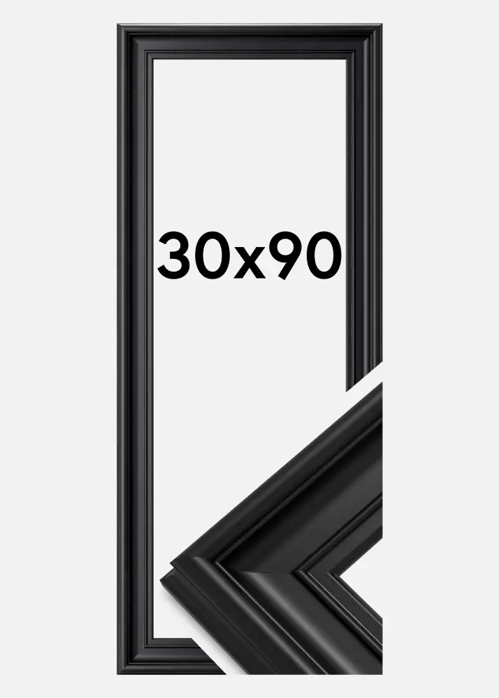 A Mora Premium Fekete az egyik legkiválóbb képkeretünk. Svédország gyönyörű erdeiből származó fából készült, és saját keretműhelyünkben szereltük össze. Ezért garantálhatjuk a szokásostól eltérő minőséget. A keret elegáns széles fekete profillal rendelkezik, teljes mértéke 57 mm. Tökéletes a legszebb képeidhez!