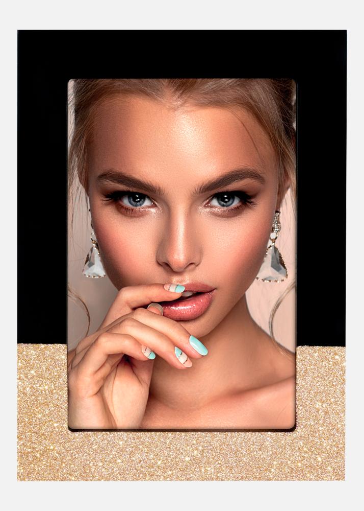 Morgex Fekete Keret 10x15 cm tökéletes keretezése kedvenc képeidnek. Modern és elegáns designjával elegánsan ötvözi a feketét és az aranyat, hogy kifinomult megjelenést hozzon létre. A fekete felület elegáns kontrasztot biztosít, míg a csillogó aranyszín az alsó részen luxus és feltűnő hatást kelt.