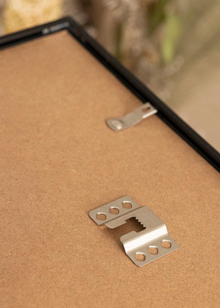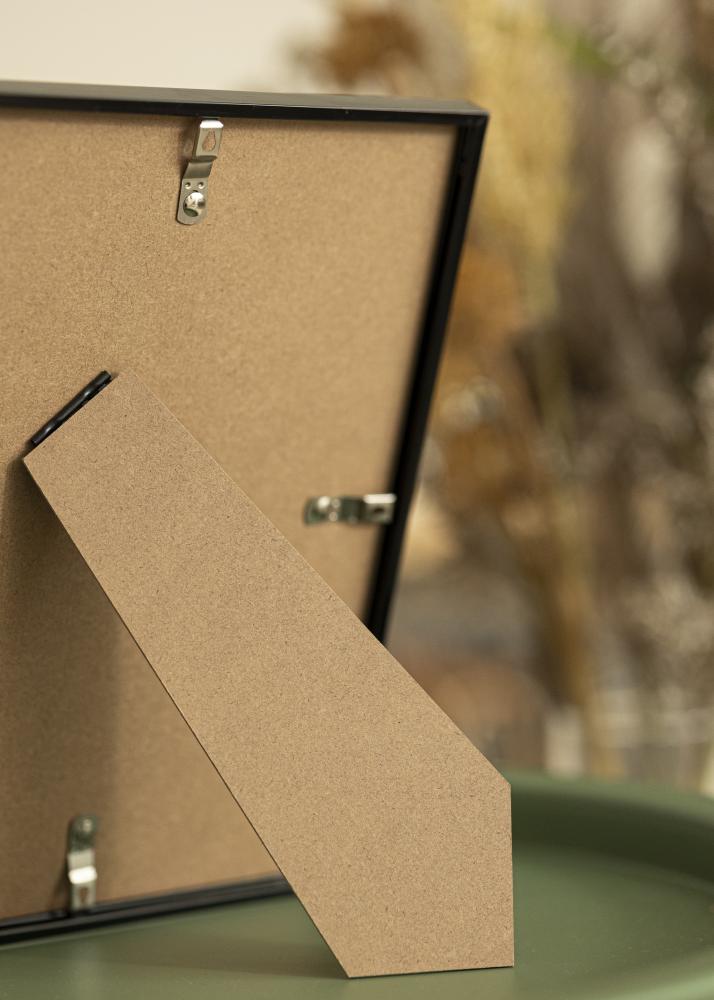 A hátoldalon található fali rögzítők lehetővé teszik a függőleges és vízszintes felakasztást. A kisebb méretekhez tartozik támasztóláb is, így a kis képkereteket a könyvespolcra vagy az íróasztalra is állíthatja.
