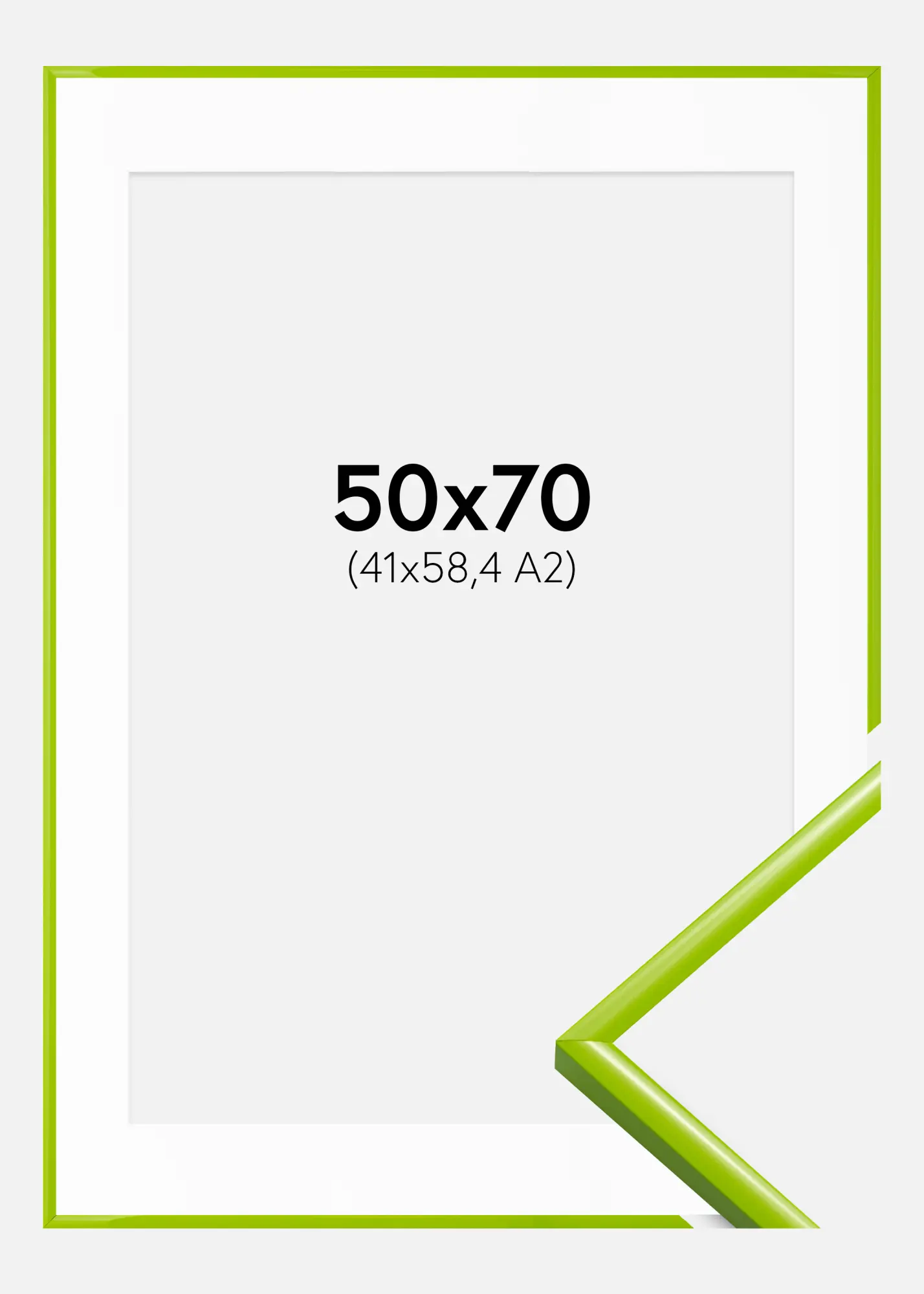 Adj vágott képalkotásainak (42x59,4 cm) megérdemelt figyelmet ezzel az elegáns zöld színű képkerettel, amely fehér passepartout-ot tartalmaz, amely elegánsan keretezi és kiemeli a motívumot. A keret fényes felülete, amely 9,8 mm széles és 16,5 mm mély, kifinomult hatást kölcsönöz a faldekorációnak.