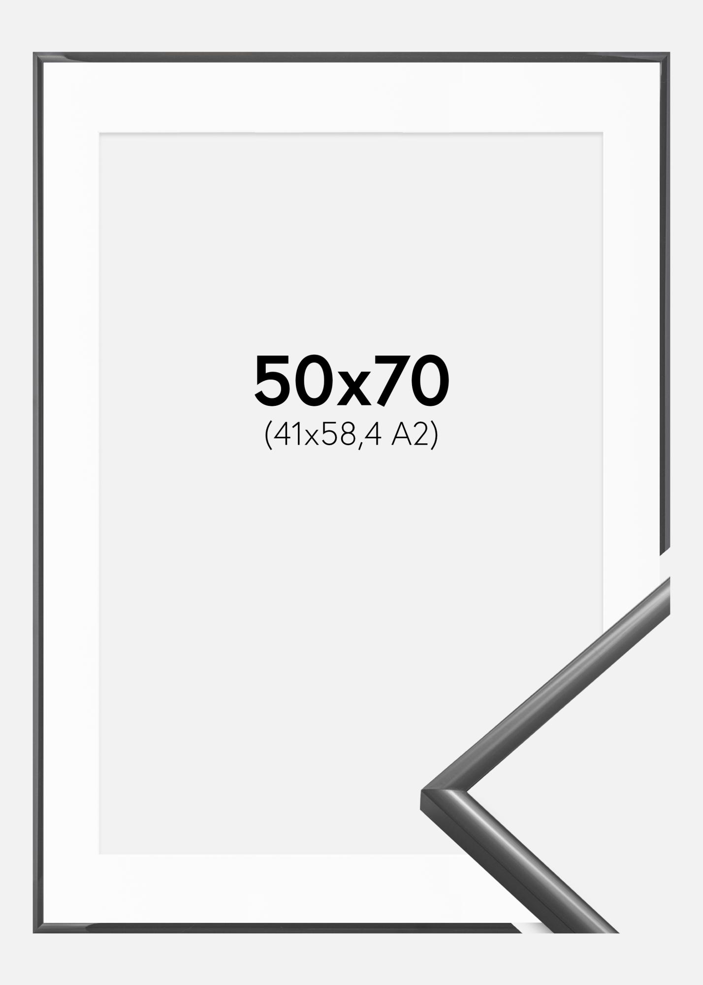 A keret karcsú méretei, amelyek 9,8 mm szélesek és 16,5 mm mélyek, fényes felülettel rendelkeznek, amely modern megjelenést kölcsönöz a lakberendezésednek. Ezenkívül praktikus fém akasztókkal van ellátva a hátoldalon, így a képkeret vízszintesen és függőlegesen is felakasztható. A keret külső méretei 51,1x71,1 cm, ami bőséges felületet biztosít, hogy műalkotásod kitűnjön.