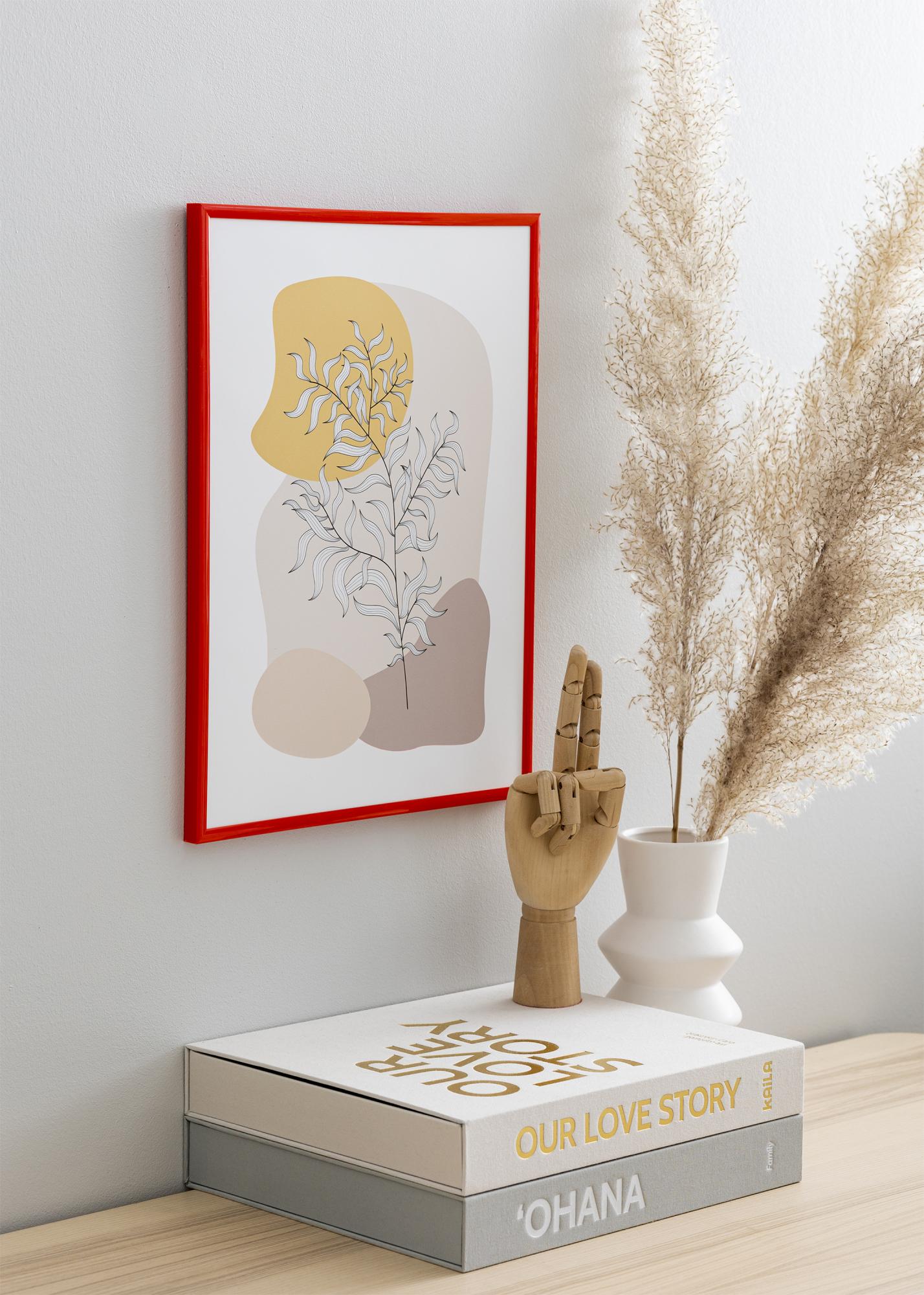 A keret lenyűgöző szélessége 9,8 mm és mélysége 16,5 mm, ami robusztus és megkülönböztető élt ad a faldekorációnak. A keret fényes piros felülete szembetűnő részlet, amely felhívja magára a figyelmet és kiegészíti mind a modern, mind a hagyományos belsőépítészeti stílusokat. A fekete paszpartu erős kontrasztot teremt, amely kiemeli a képet és magával ragadja a szemlélő figyelmét.
