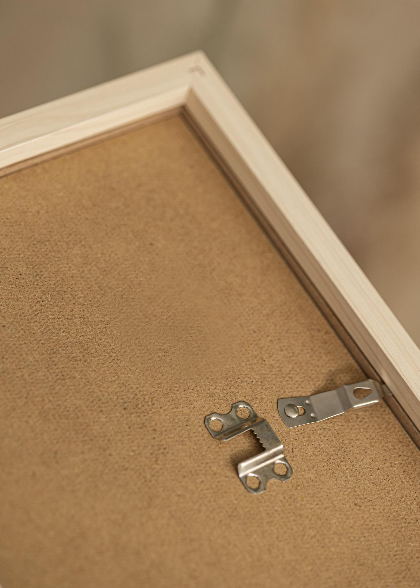 A képkeret léce teljesen 30 mm mély, ami hatásos keretezést biztosít. A hátlapot forgatható fémkapcsok tartják a helyén, amelyekkel ki tudja venni a hátlapot, hogy behelyezze a képet és a paszpartut. A keret hátoldalán falikampók találhatók, amelyek lehetővé teszik az álló és fekvő rögzítést is.