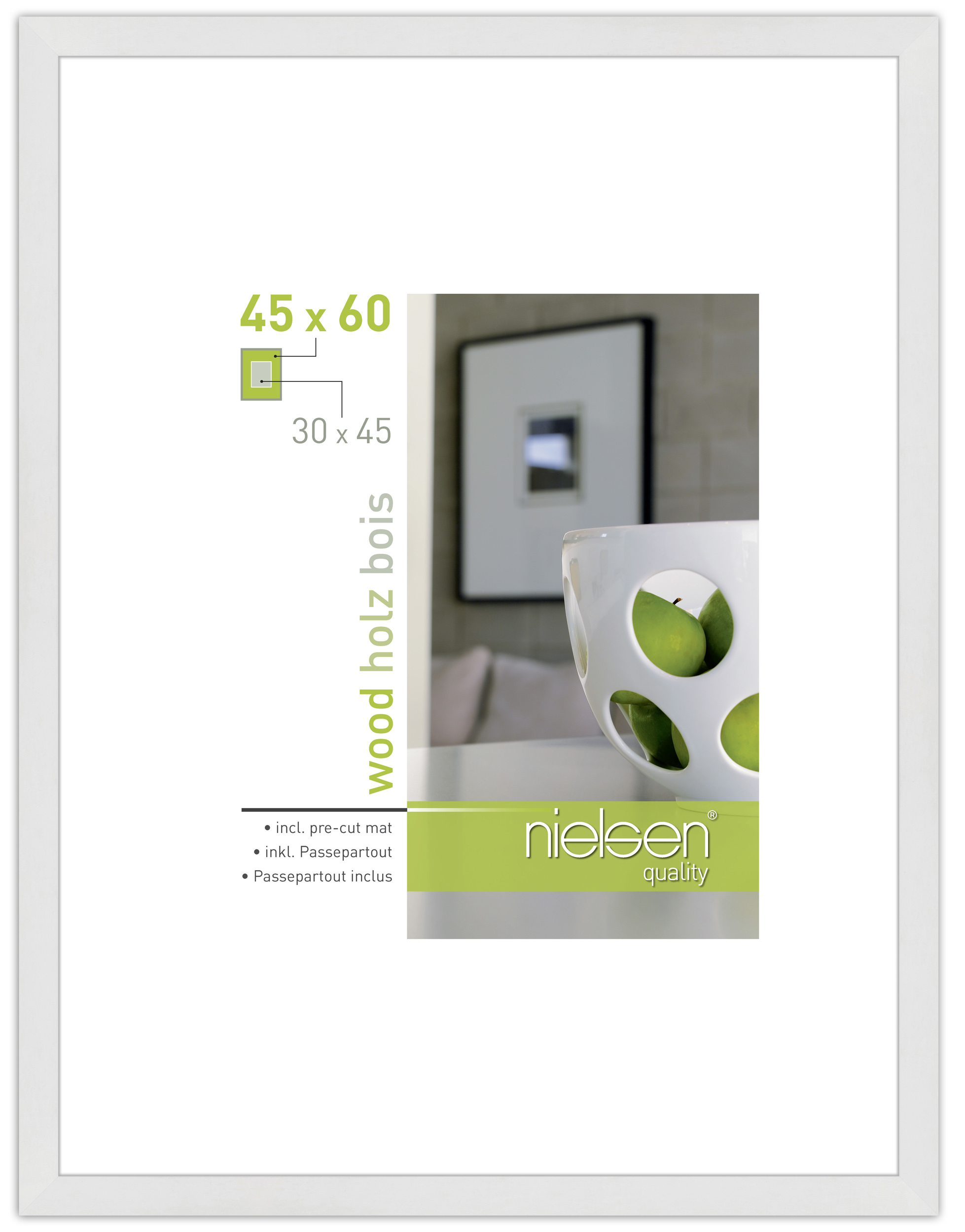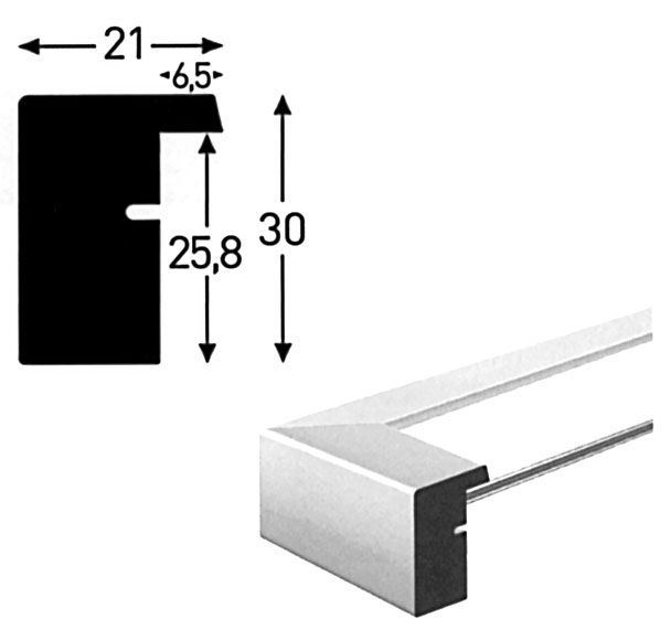 Ez egy stílusos fehér képkeret klasszikus, négyzetes profillal. A keret 20 mm széles léce lakkozott és fényes felületű, ami modern megjelenést kölcsönöz, és jól illeszkedik számos különféle motívumhoz. A léc 30 mm mély, így a keret egy kicsit kiemelkedik a faltól, és enyhe 3D-hatást kelt. A keret nagy belső mélységgel (hornyolt mélységgel) rendelkezik, egészen 25,8 mm-rel. Ez bőséges helyet biztosít, hogy kiegészítsd a keretet egy paszpartuval – és valójában tényleg jár is egy paszpartu ezzel a kerettel!