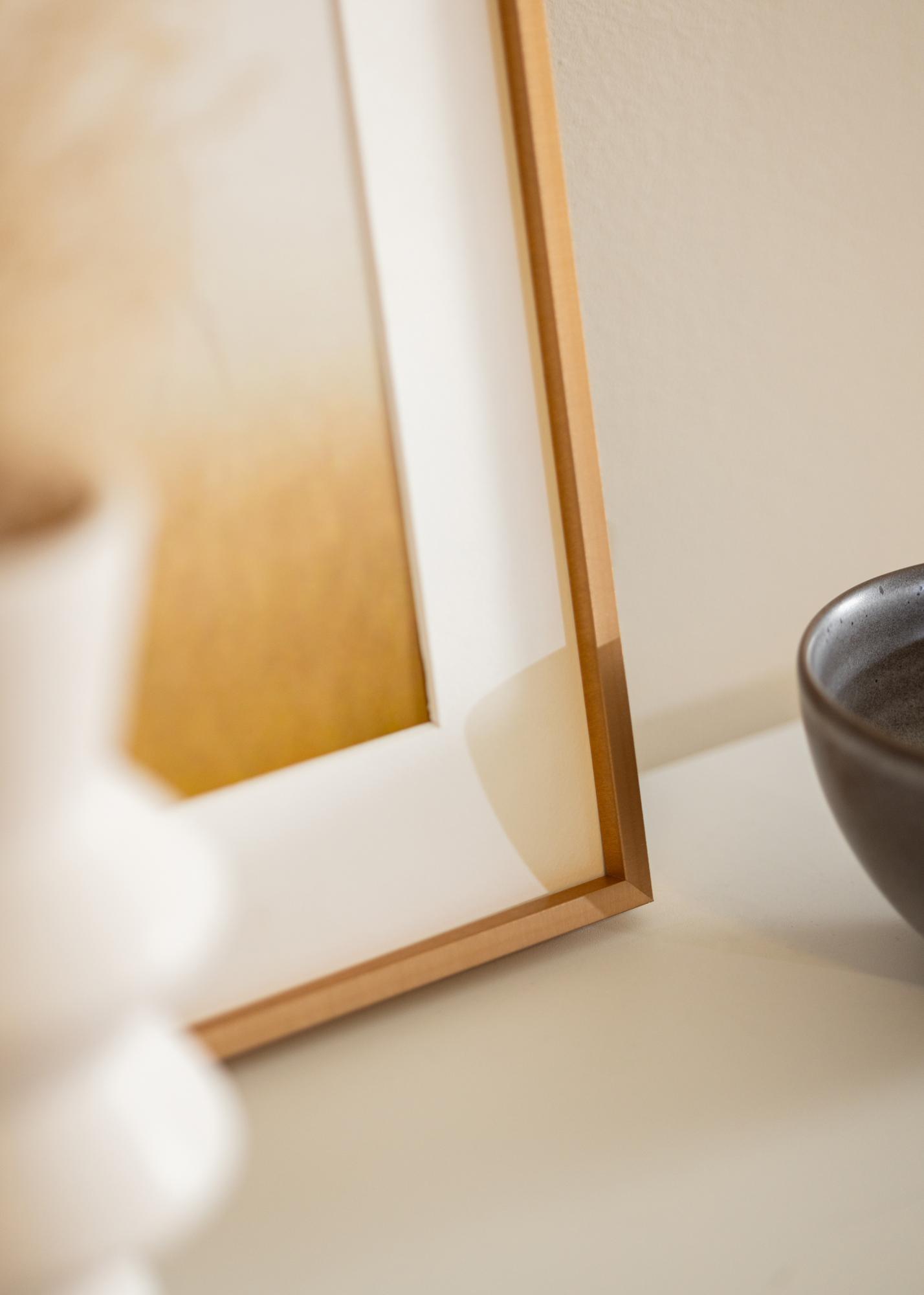 A keret csiszolt felülete lágy fényt és finom színváltásokat ad, ami élénk és dinamikus megjelenést kölcsönöz. Az éles élek és a minimalista kialakítás fokozzák a modern megjelenést, miközben a meleg árnyalat kifinomult és elegáns benyomást kelt. Ennek köszönhetően a keret nemcsak praktikus keretezést biztosít, hanem dekoratív részletként is funkcionál otthonában.