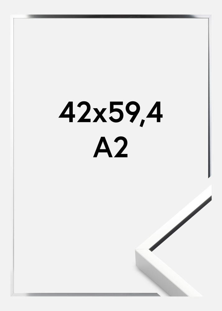 Elegáns fényes ezüst színű képkeret magas minőségben, Németországban készült, vékony alumínium keretliszttel. A keret minimalista kialakítása miatt remekül illeszkedik a letisztult lakberendezési stílusú otthonokba, és a diszkrét világosszürke ezüstszín egyaránt kiválóan alkalmas fényképek és poszterek keretezésére. A nagy méretválaszték miatt a keret tökéletes egy képgyűjteményhez, ahol a festmények együttesét a keretválasztás tartja össze.