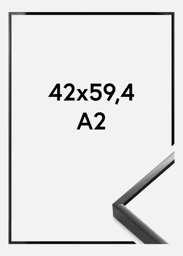 Elegáns prémium képkeret, magasfényű vékony fekete keretléc, amely tökéletesen illeszkedik egy modern, letisztult belső térbe. A keret felületi rétege és a minimalista érzés a karcsú kialakításban azt eredményezi, hogy grafikai poszterekhez és fekete-fehér fényképekhez is szép használni. A képkeret alumíniumból készül, és számos különböző méretben kapható, így kiváló választás, ha többféle formátumú képekből álló képfalat szeretnénk létrehozni, amelyeket a keretválasztás köt össze.