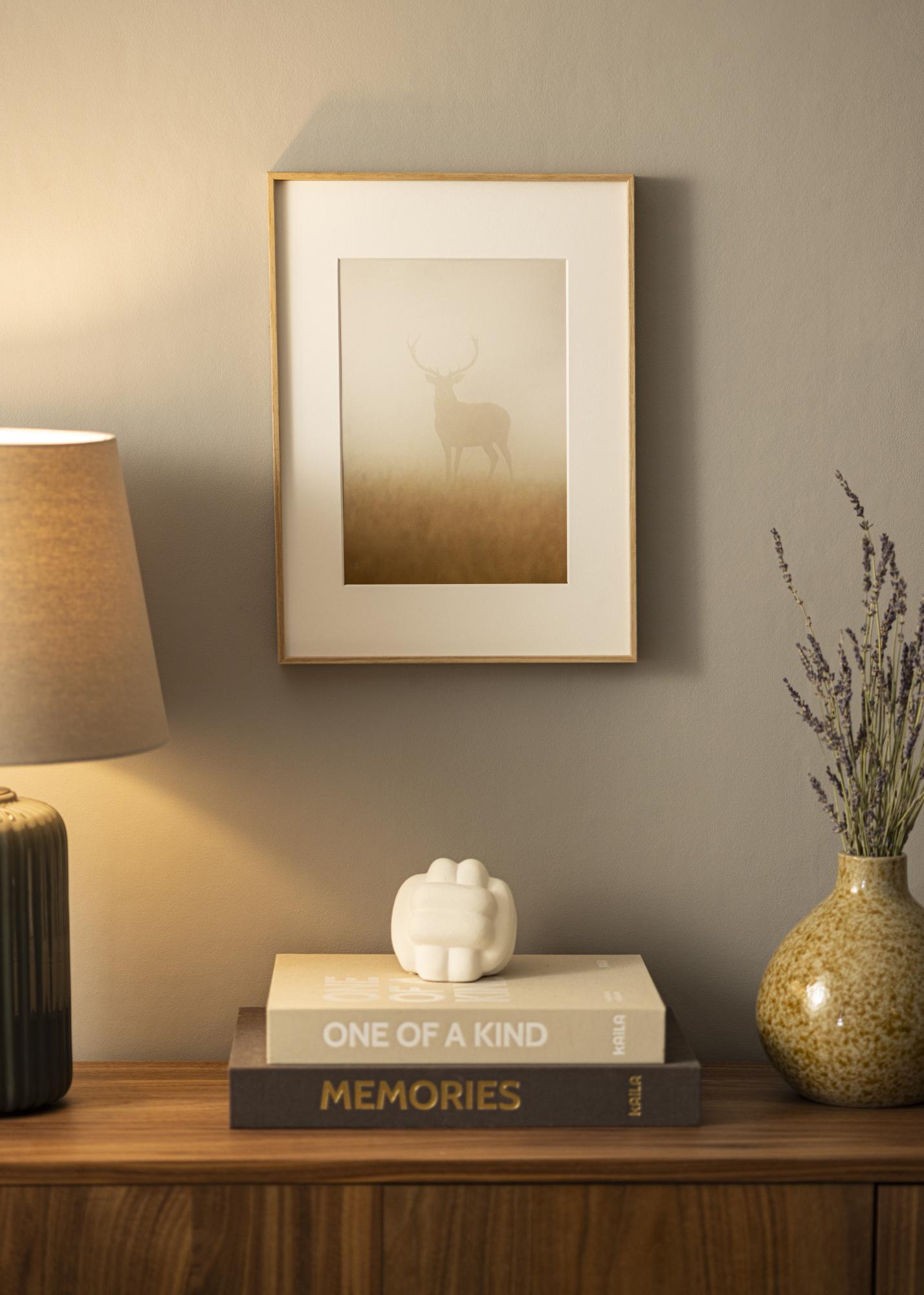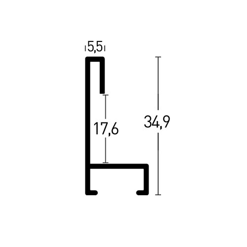 A keret 5,5 mm széles keretlécet tartalmaz, amely diszkrét keretezést biztosít a képeinek anélkül, hogy elvonja a figyelmet a témáról. A 34,9 mm-es mélység robusztus érzést kölcsönöz a keretnek, miközben megőrzi eleganciáját és kifinomultságát. Alumíniumból készült, ez a keret ötvözi a tartósságot a könnyedséggel, így egyszerűen kezelhető és felakasztható.
