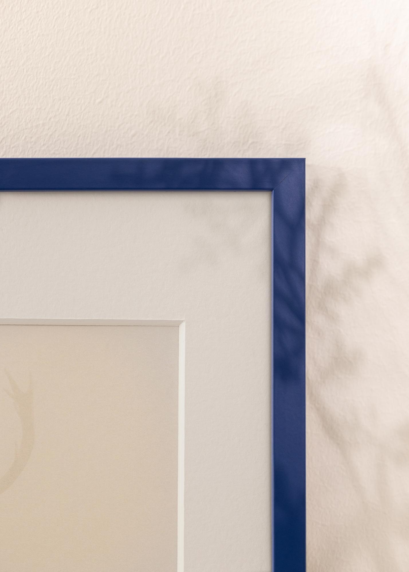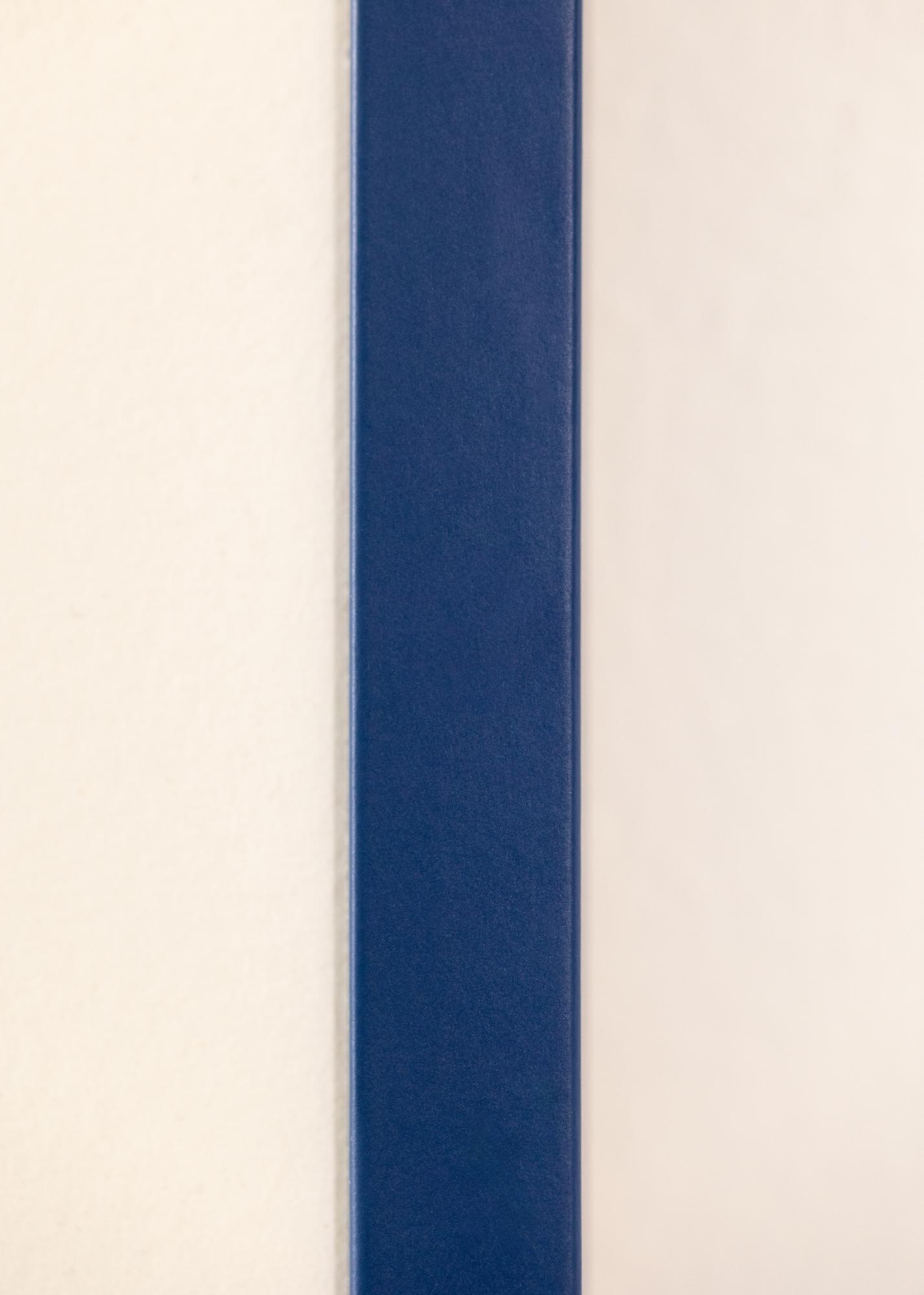 Elegáns fa keret négyzet alakú profillal, amely a dán Incado NordicLine sorozatából származik. A keretsín szélessége és mélysége egyaránt 15 mm, ami szép szimmetriát és karcsú megjelenést kölcsönöz neki, miközben masszívnak érezhető. A keret fóliázott, de matt felületű abban a klasszikus sötétkék árnyalatban, amely mindig népszerű és soha nem megy ki a divatból.