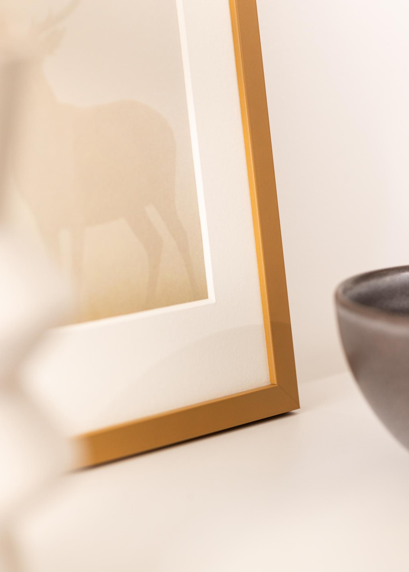 Stílusos keret a dán Incado-tól, amely a NordicLine sorozathoz tartozik. A keret fából készült, letisztult négyzetes profilja van, 15 mm szélességgel és ugyanilyen mélységű listával. A keret felülete matt, tompa mustársárga árnyalatban fóliázott, így szép, de diszkrét színfolt lesz otthonában.