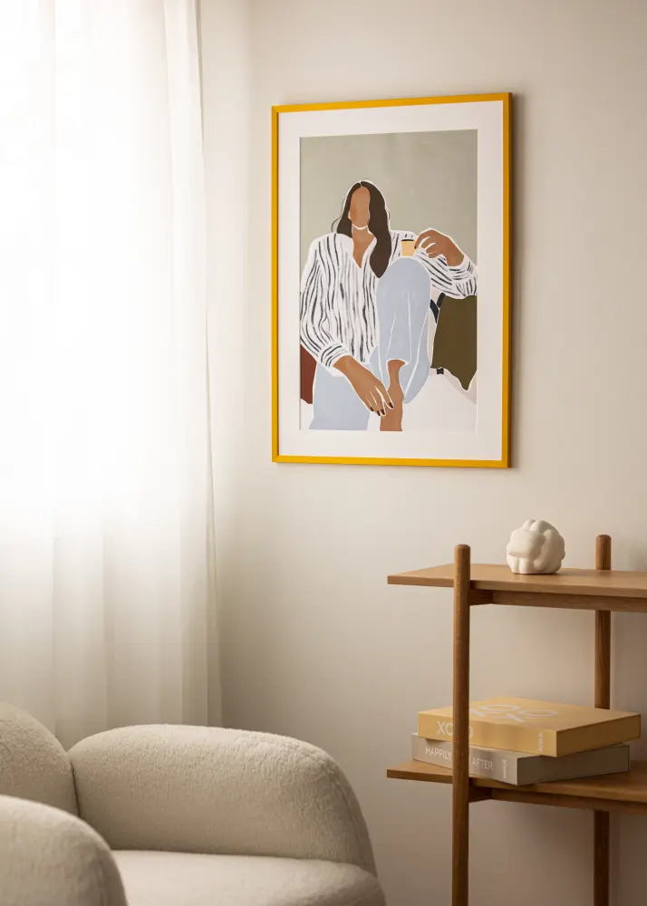Ez az élénk képkeret a dán Incado-tól származik, és a NordicLine sorozat része. A keret fából készült, minimalista, négyzetes profilú, ahol a lécek szélessége és mélysége is 15 mm. A fényképkeret felülete fóliázott, de stílusosan matt, gyönyörű sárga árnyalatban, amely életet ad a falainak.