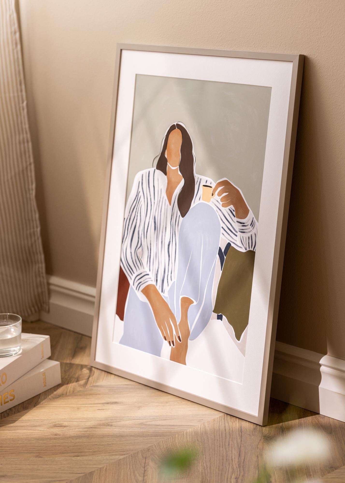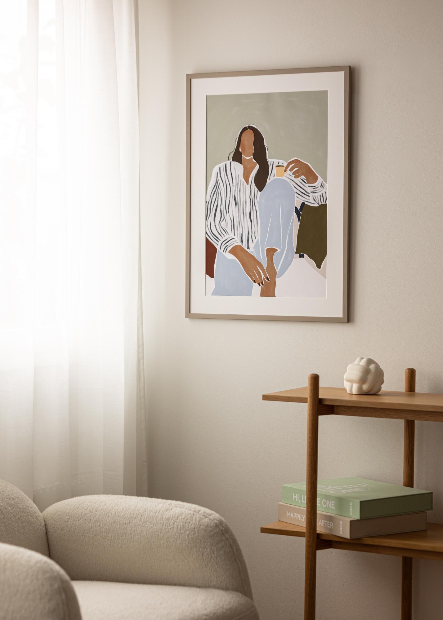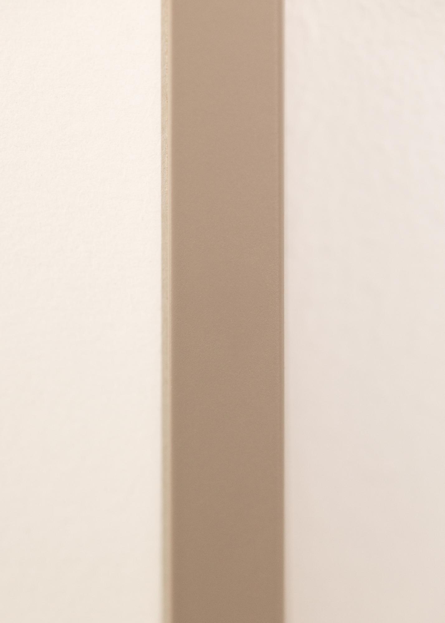 Ez a stílusos keret a NordicLine sorozathoz tartozik, a dán Incado cégtől, minimalista négyzetes profillal rendelkezik. A lécek szélessége és mélysége egyaránt 15 mm, ami kellemes szimmetriát és karcsú – de mégis masszív – érzetet ad a képkeretnek. A keret fából készült, és fóliázott felületű, matt meleg szürke árnyalatú, amely lehetővé teszi, hogy a lakás szürke és bézs elemeit is összhangba hozza.