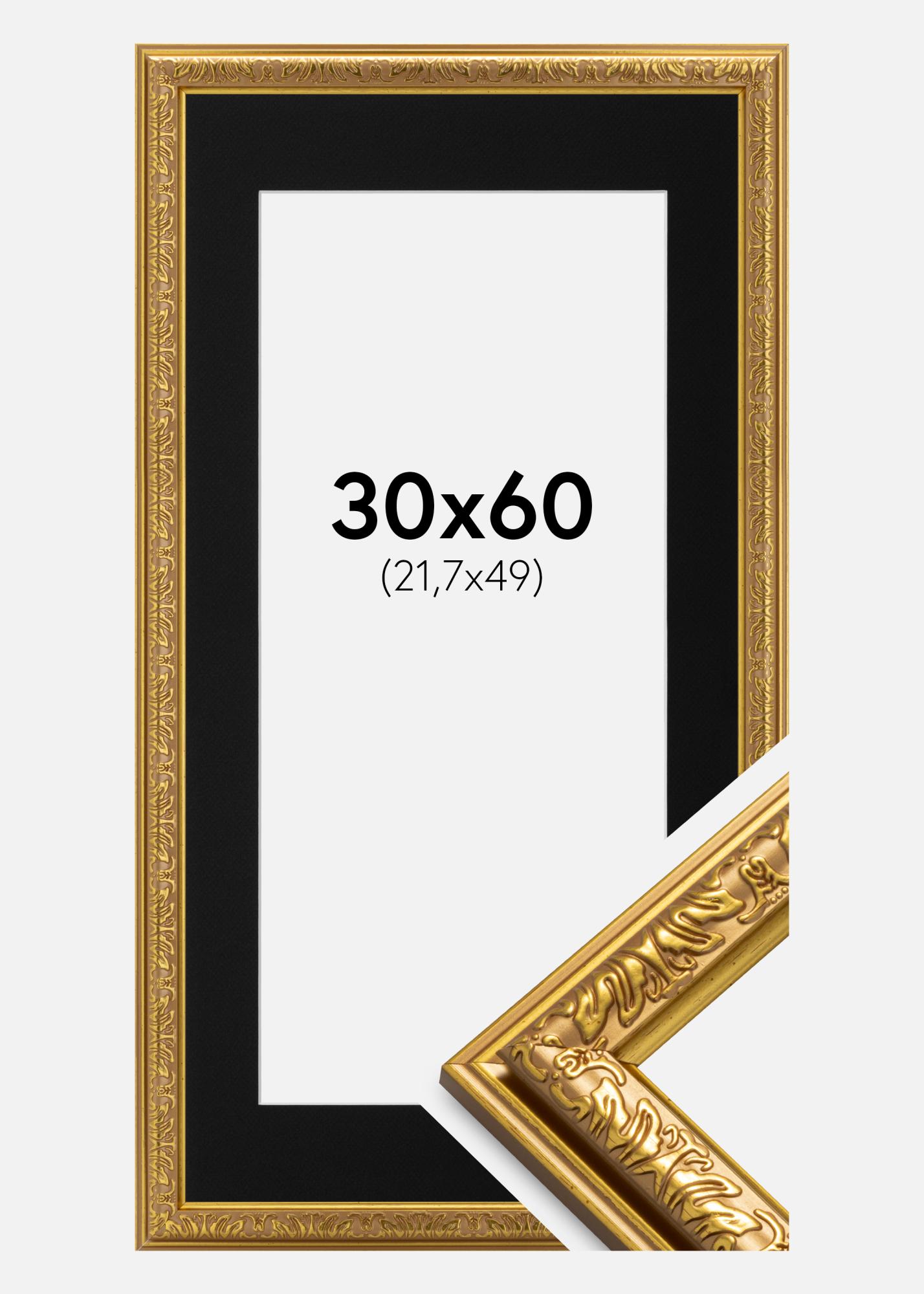 Keret Nostalgia Arany 30x60 cm - Paszpartu Fekete 22,7x50 cm