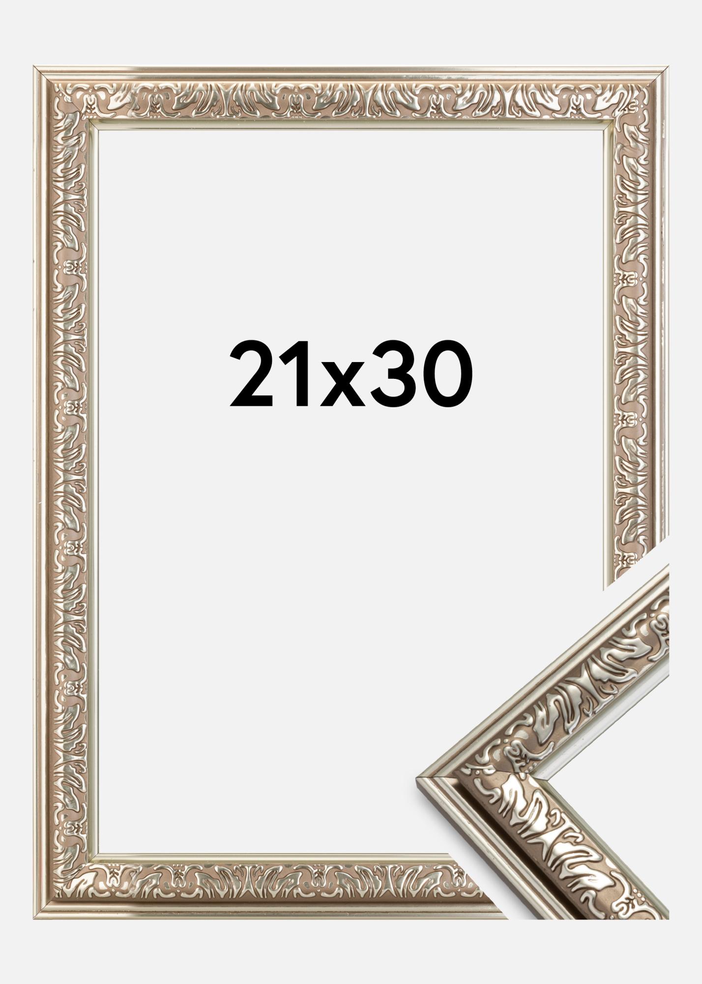 A nosztalgia egy elegáns ezüstkeret retro stílusban, szép díszítésekkel. Kiváló választás, ha széles retro keretre van szükséged a legszebb képeidhez.