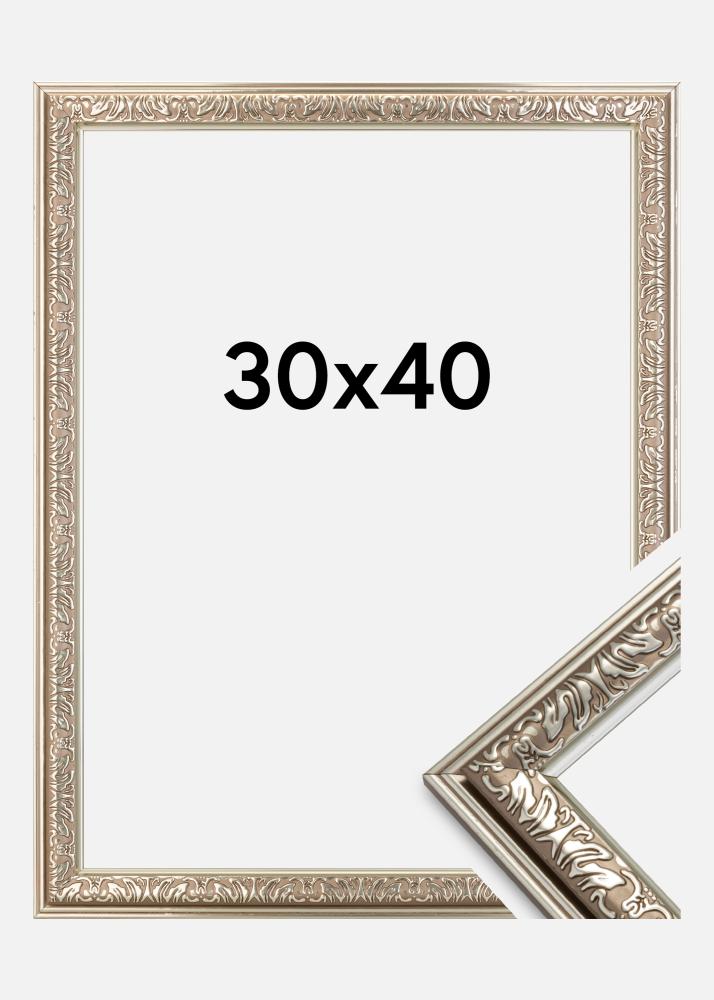 Nostalgia egy elegáns ezüst keret retró stílusban, szép díszítésekkel. Kiváló választás, ha széles retró keretet keres a legszebb képeihez.