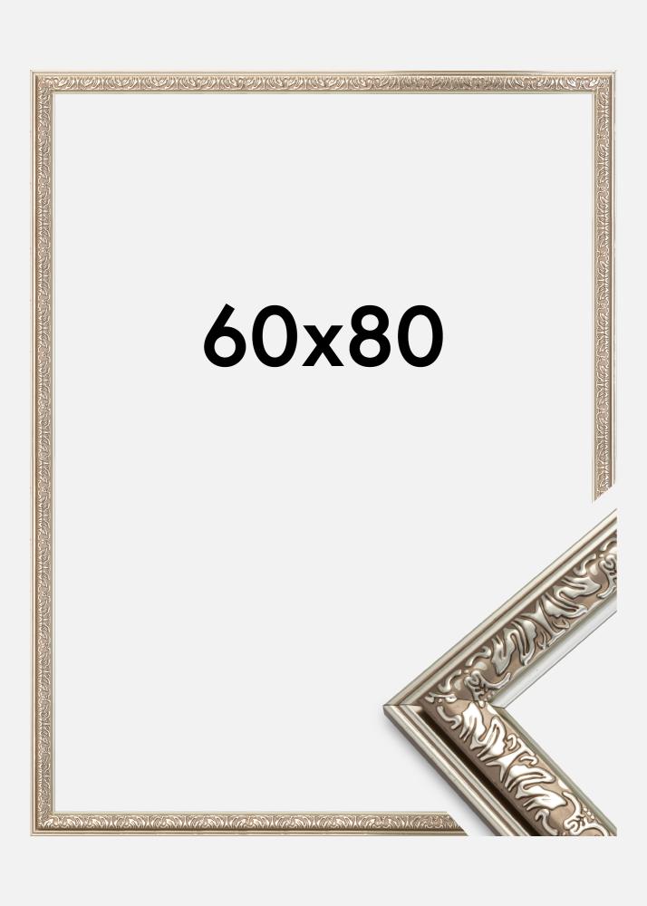 Nostalgia egy elegáns ezüst keret retró stílusban, szép díszítésekkel. Jól illik, ha széles retró keretet keres a legszebb képeihez.