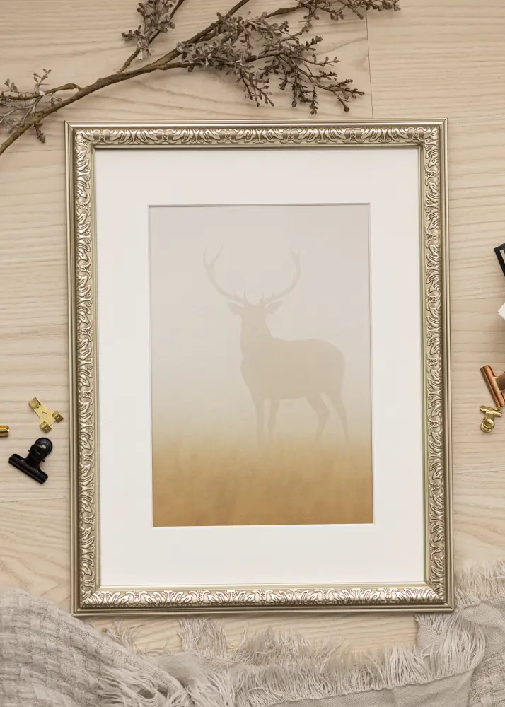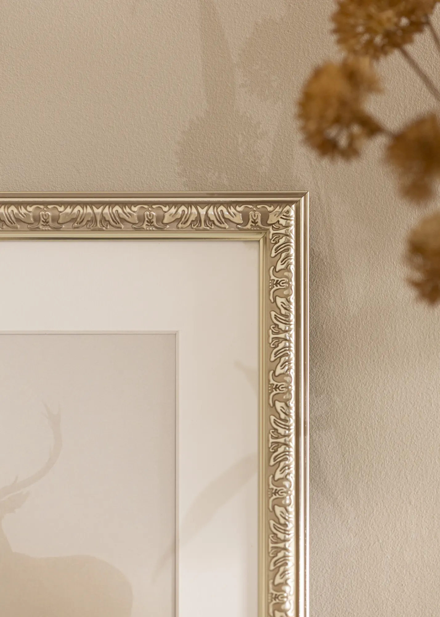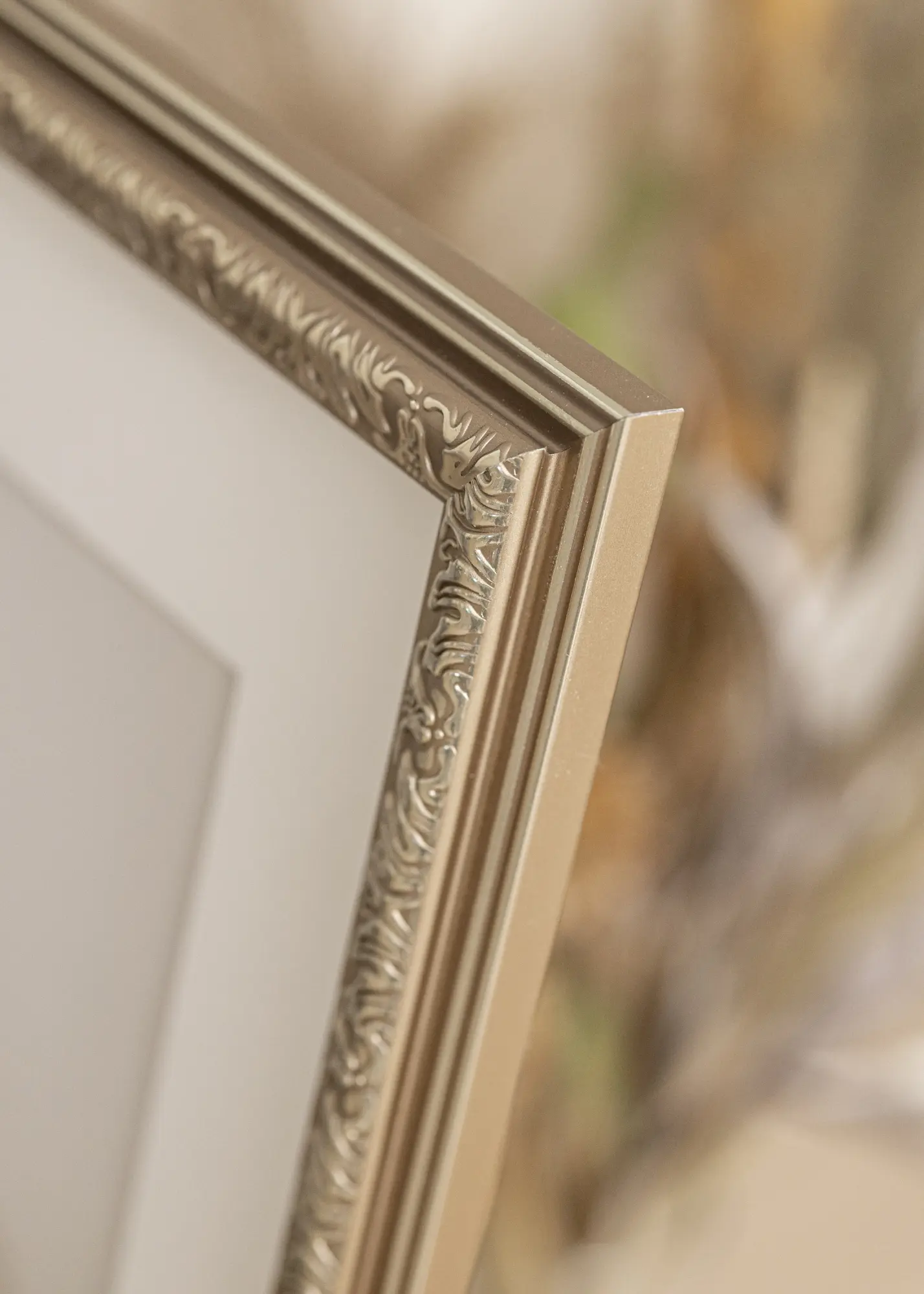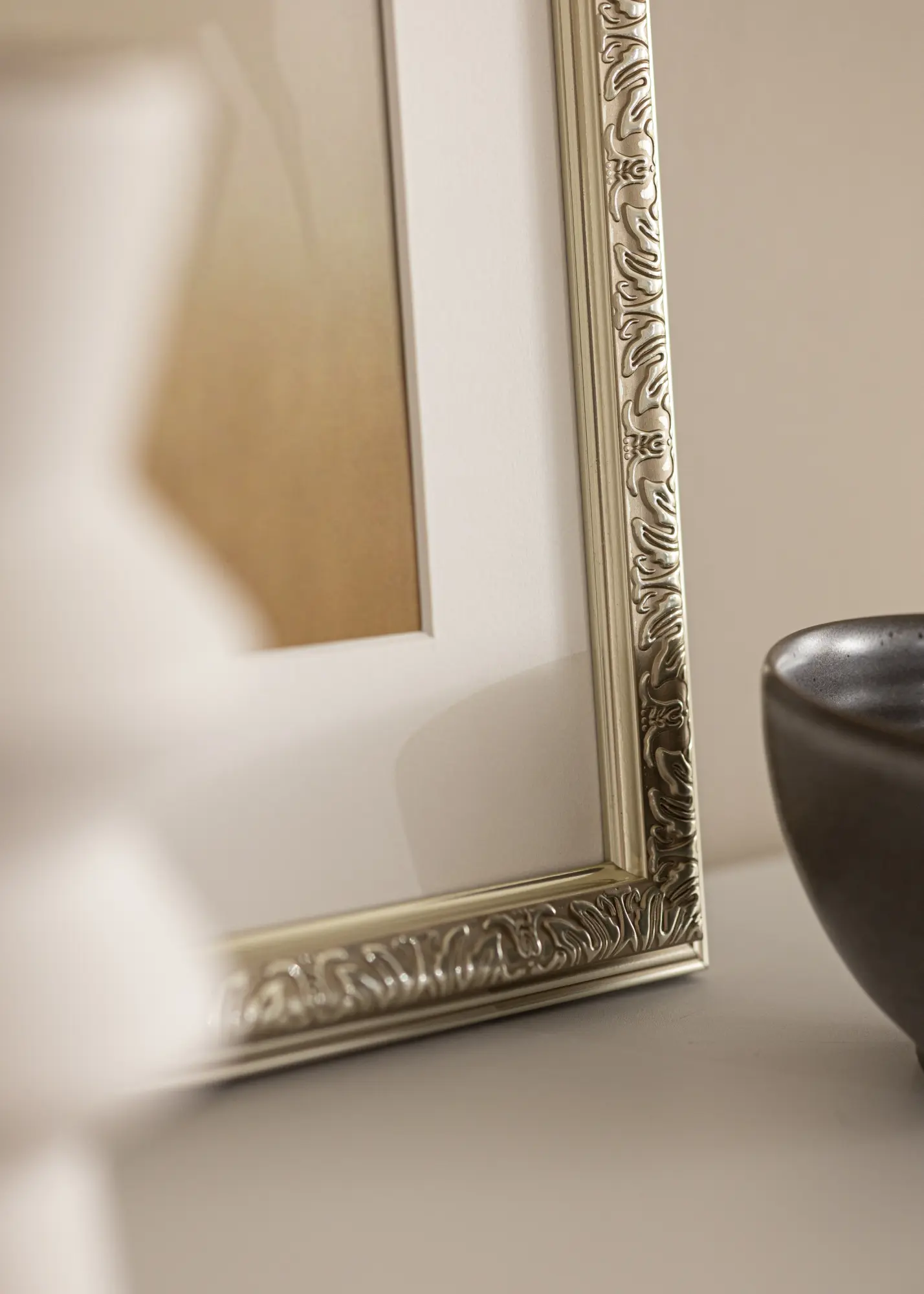 A nosztalgia egy elegáns ezüstkeret retró stílusban, szép díszítésekkel. Kiválóan alkalmas, ha széles retró keretet keres a legszebb képeihez.