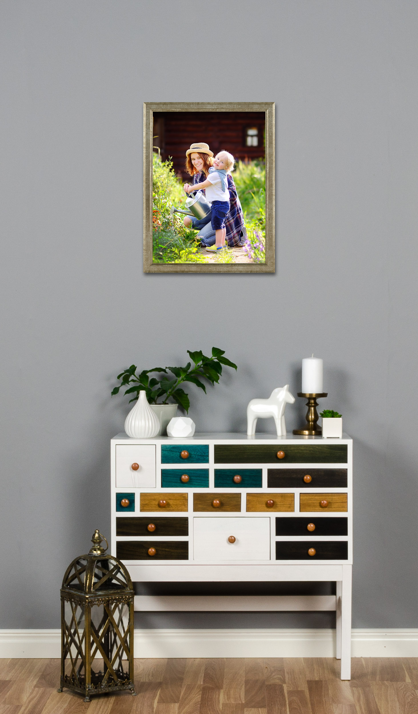 Összefoglalva, a Nyhyttan Antik Ezüst keret kiváló választás mindazoknak, akik elegáns és időtlen keretezést keresnek. Antik ezüst kivitele és finom felülete stílusos kiegészítővé teszi bármely helyiségben. Az egyedi méretre rendelés lehetőségével olyan képkeretet kapsz, amely valóban megfelel az igényeidnek, és kiemeli a képeid vagy műalkotásaid legjavát.