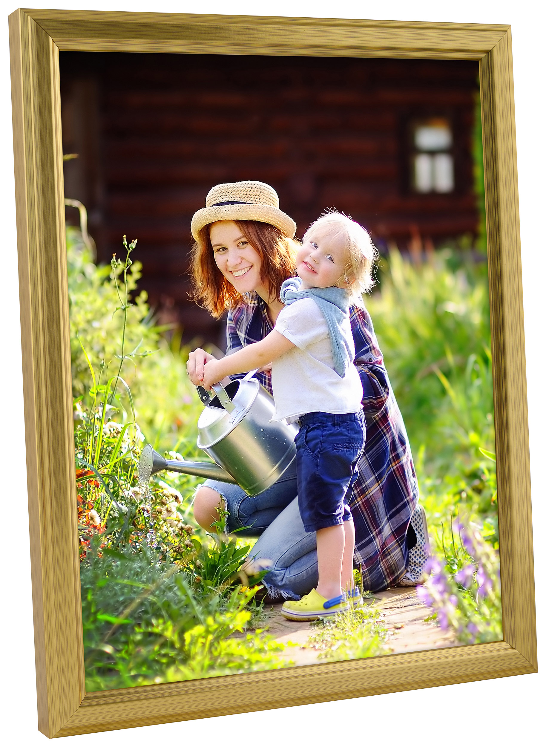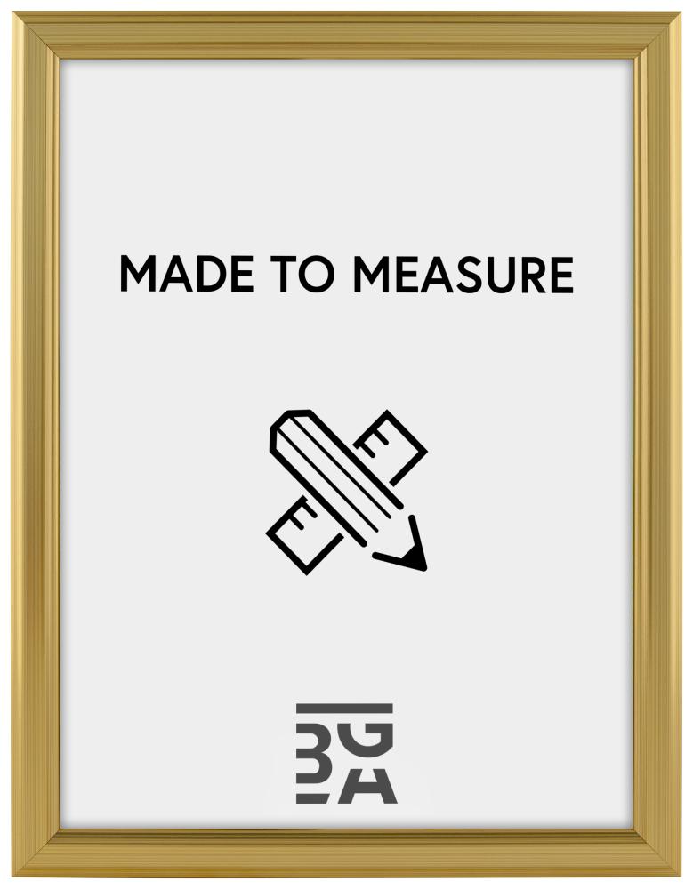 Ez a méretre szabott keret 24 mm széles és 30 mm mély keretlécből áll, ami stabil és robusztus keretezést biztosít. Fenyőből készült, ami tartósságot és esztétikát kínál. A keret arany színe meleg és hívogató légkört teremt, így ideális arra, hogy kiemelje legkedvesebb képeit vagy műalkotásait.