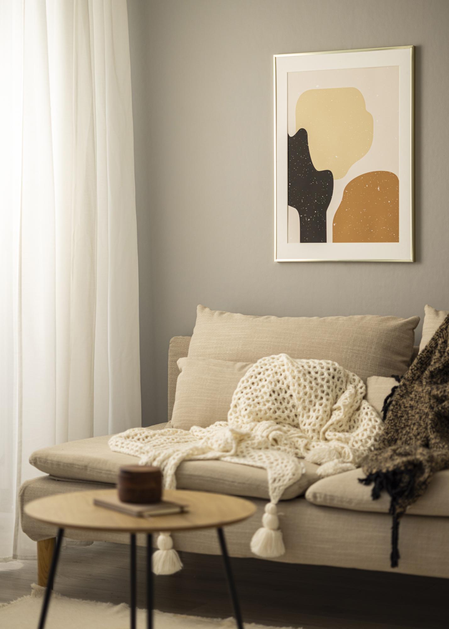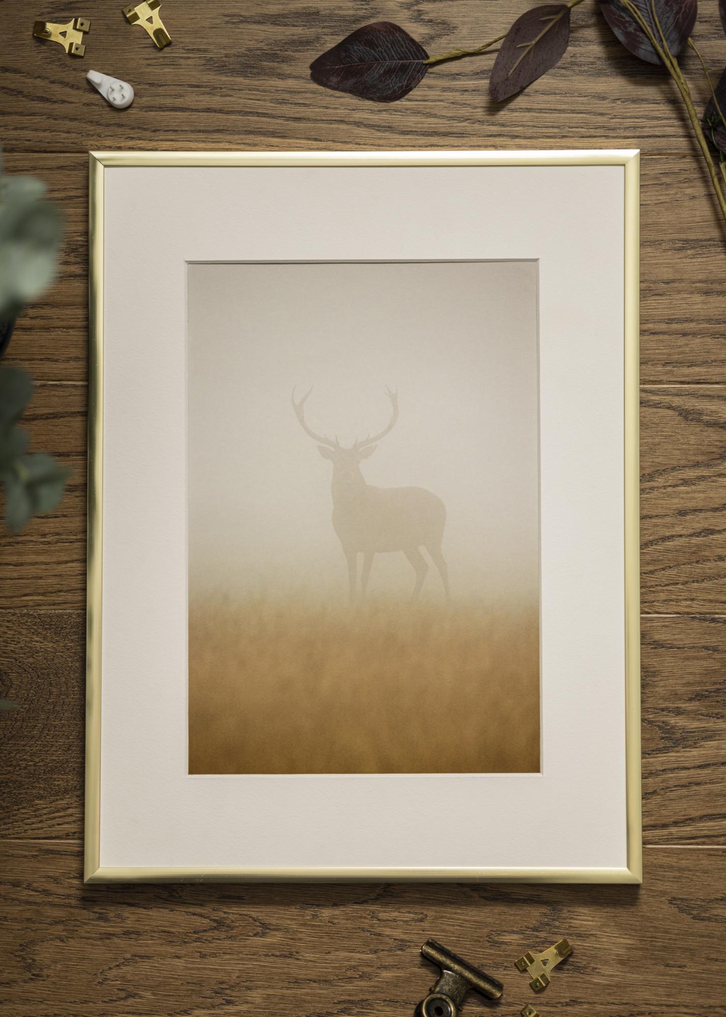 Tapasztalja meg az eleganciát és a kifinomultság érzetét exkluzív aranykeretünkkel, amely tökéletesen kiemeli 60x90 cm-es képét vagy fotóját. A keret 9 mm széles profiljának fényes felülete luxus érintést kölcsönöz fali dekorációjának. Fehér paszpartu által keretezve mélységet és fókuszpontot hoz létre, amely a néző szemét a tárgyra irányítja.