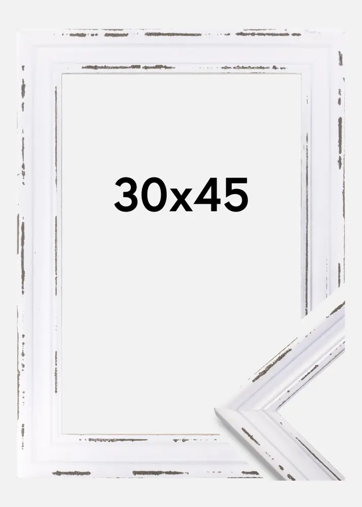 Ha nem volt szerencséd örökölni régi, bekeretezett családi fotókat, akkor saját magadnak kell elkészítened ezeket a képeket. Itt van egy dekoratívan kopott keret, amely tökéletesen megfelel a célnak! A keret fehér, klasszikusan profilozott léccel és lekopott részekkel, ahol a fa újra látható. Válassz a különböző méretek közül!